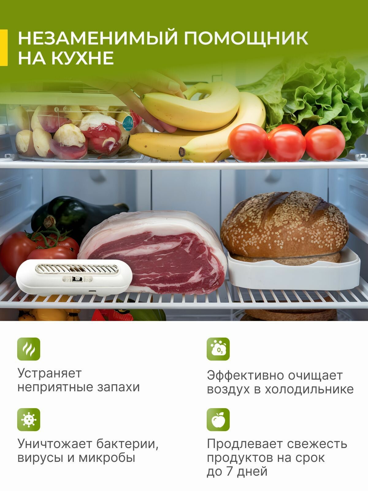 Озонатор-ионизатор , для холодильника, уровень шума 30 дБ, белый информация: