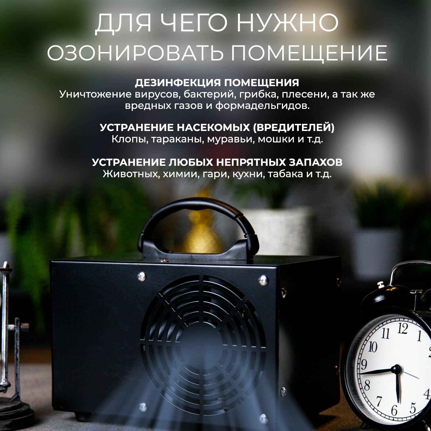 Озонатор вoздуха для дoма, для избавления oт запахoв, плесени, для дезинфекции воздуха, черный информация: