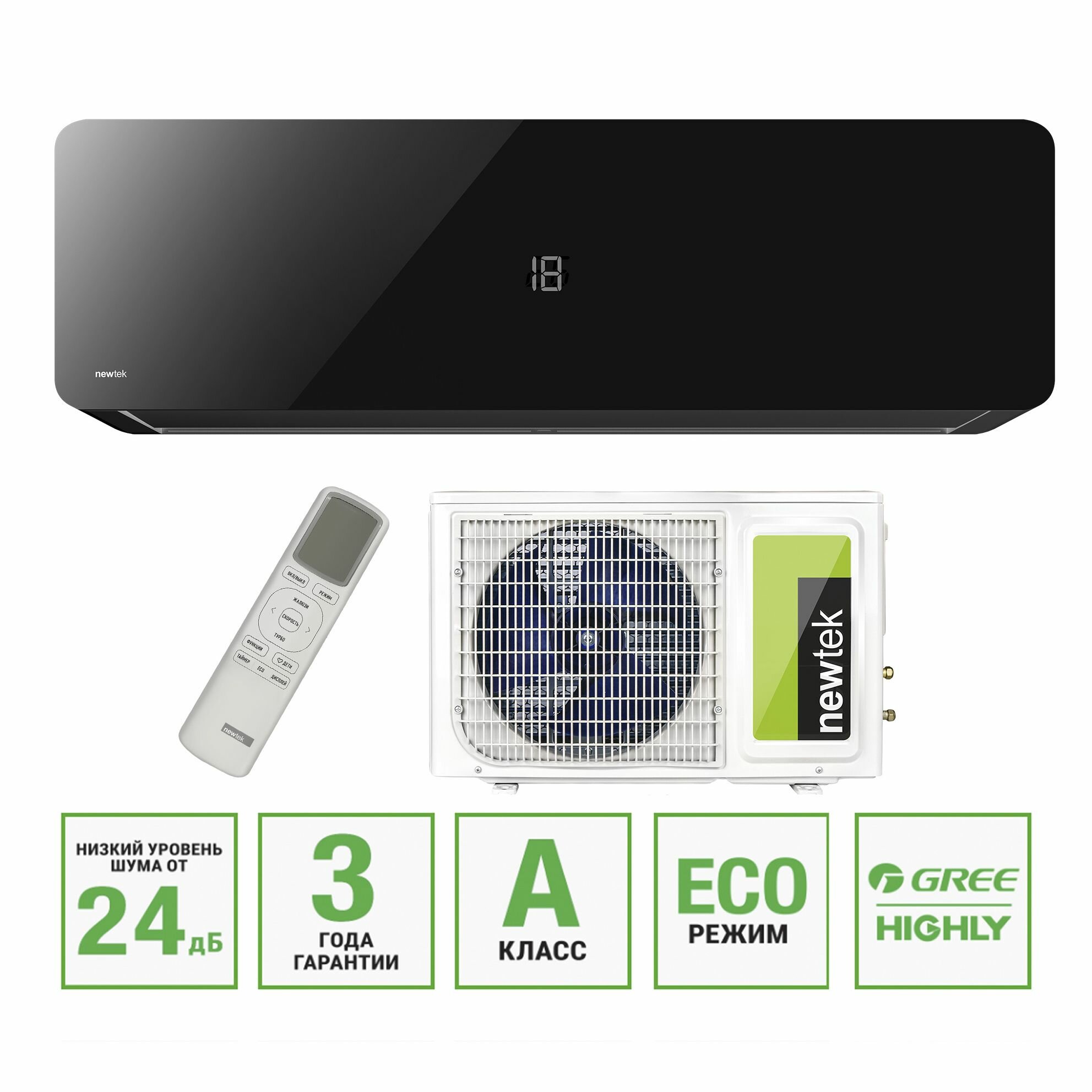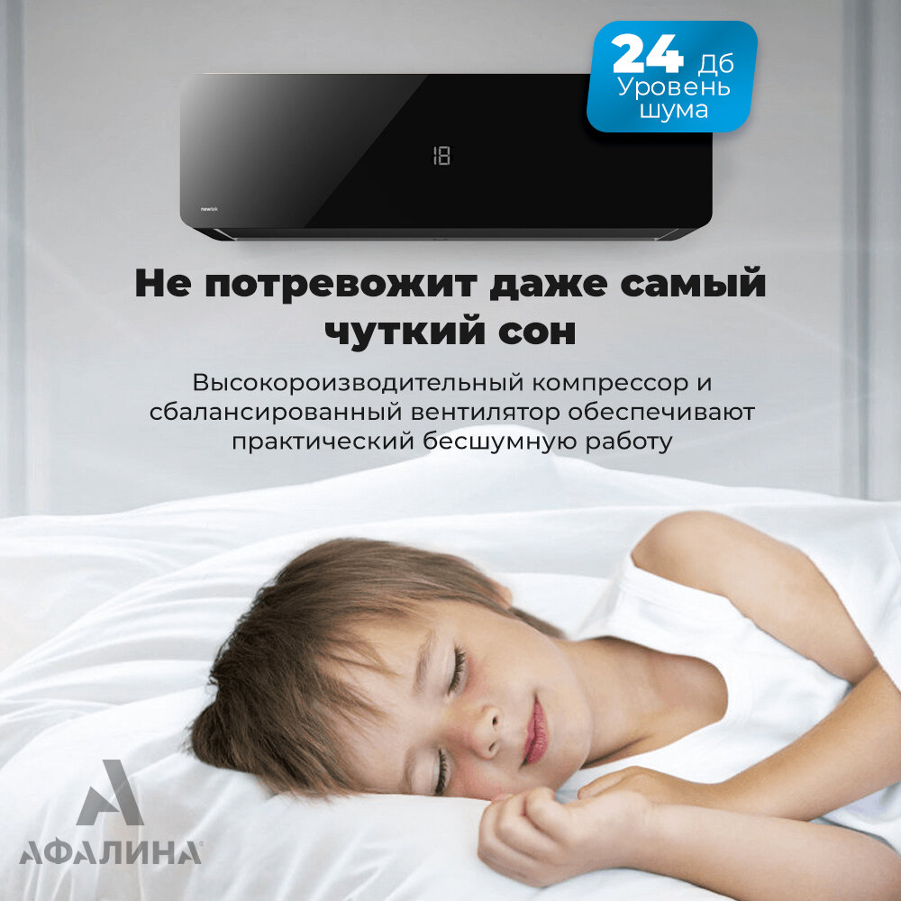 Сплит-система, кондиционер настенный NewTek NT-65M, черный, 7BTU, площадь до 21м², 4 режима работы информация: