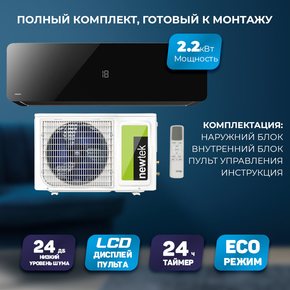 10 цен на Сплит-система, кондиционер настенный NewTek NT-65M, черный, 7BTU, площадь до 21м², 4 режима работы