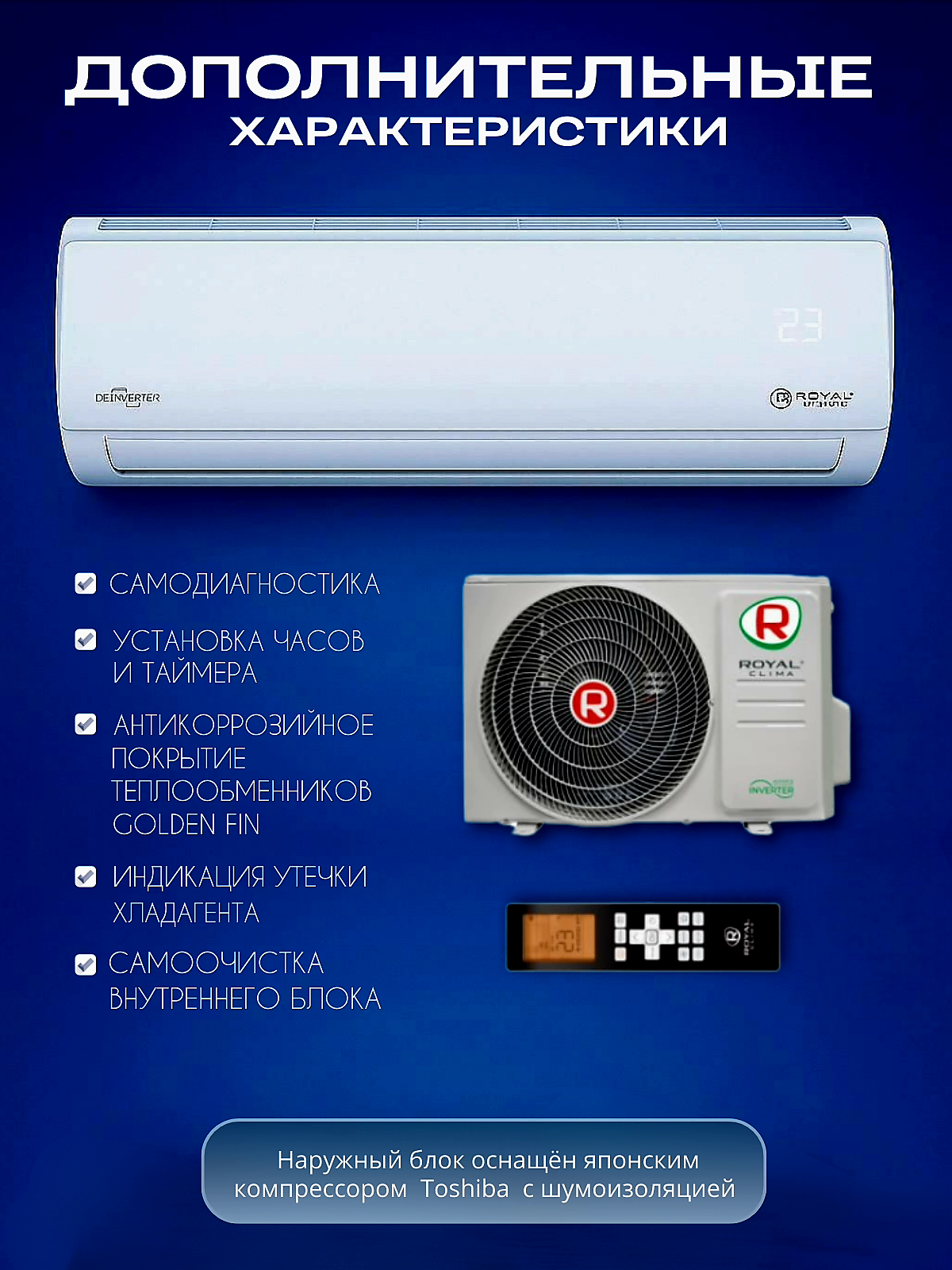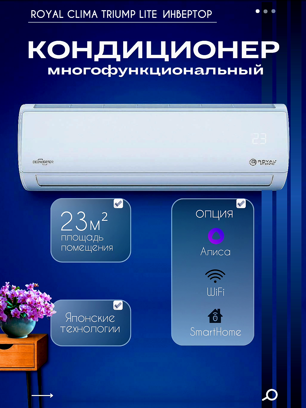 Отзывы на Инверторная сплит система Royal Clima TRIUMPH LITE RCI-TWL22HN, Wi-Fi, 7000 BTU, кондиционер A класс