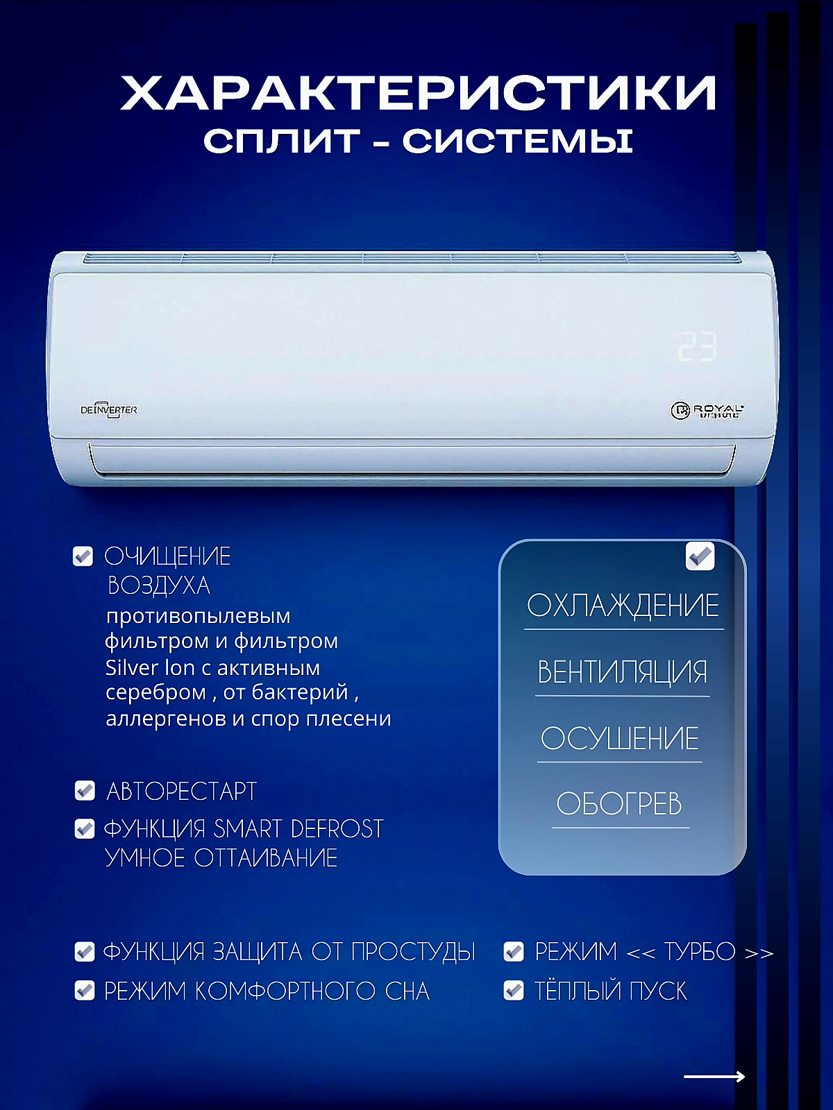 Инверторная сплит система Royal Clima TRIUMPH LITE RCI-TWL22HN, Wi-Fi, 7000 BTU, кондиционер A класс информация: