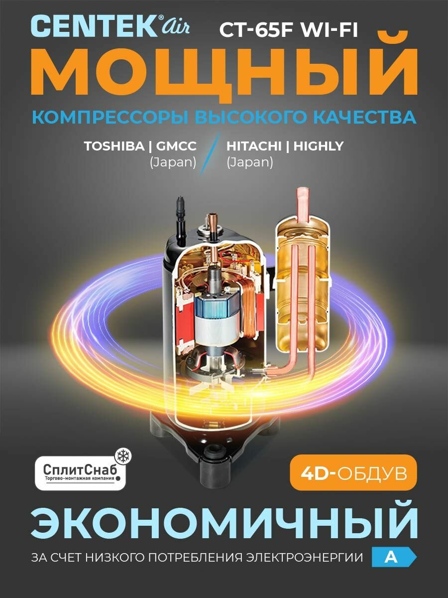 Кондиционер CENTEK CT-65F09 Wi-Fi (30 кв. м) A класс Компрессор Toshiba LED дисплей 4D i FEEL Wi Fi (встроенный модуль) информация: