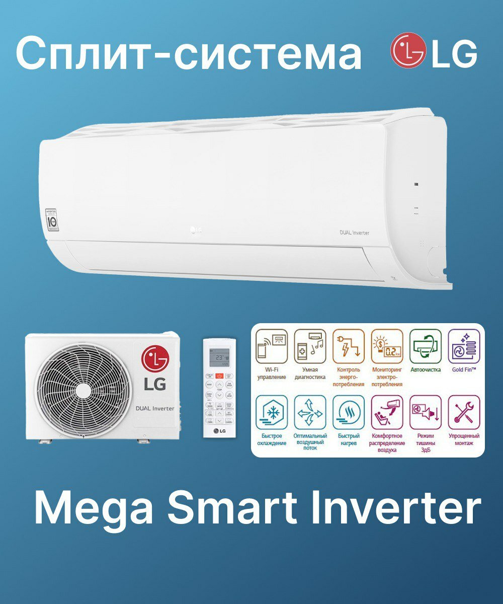 Отзывы на Кондиционер LG Mega Smart P12TT, инверторный, управление через Wi-Fi, 37 м², белый