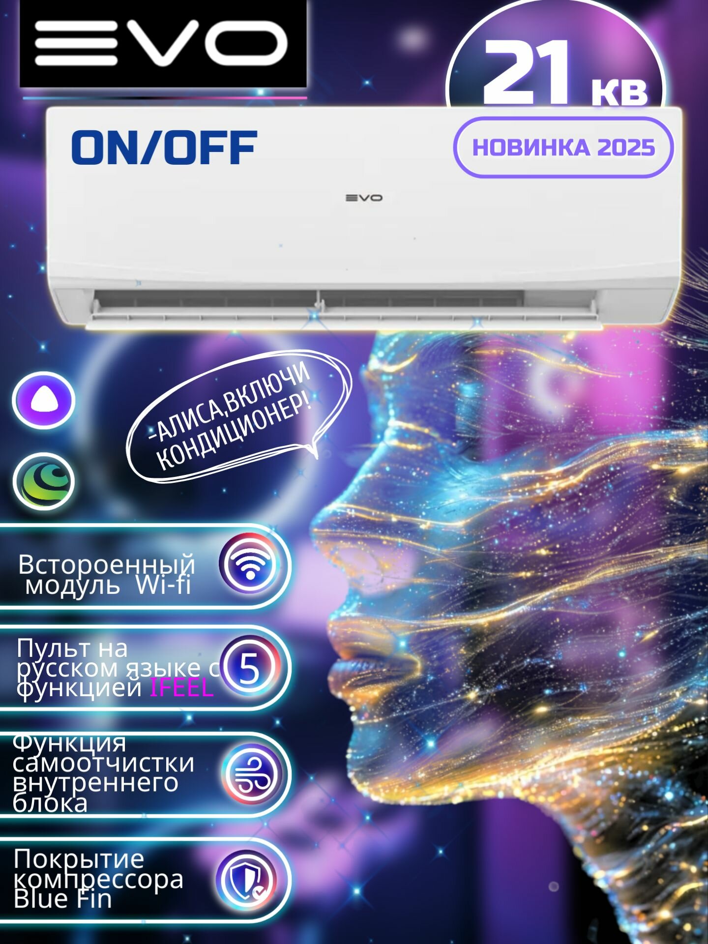 Умная сплит-система EVO EAC-07RD1, новинка 2025 года, встроенный Wi-Fi, для помещения до 21 кв, премиальный компрессор QingAn, голосовой помощник информация: