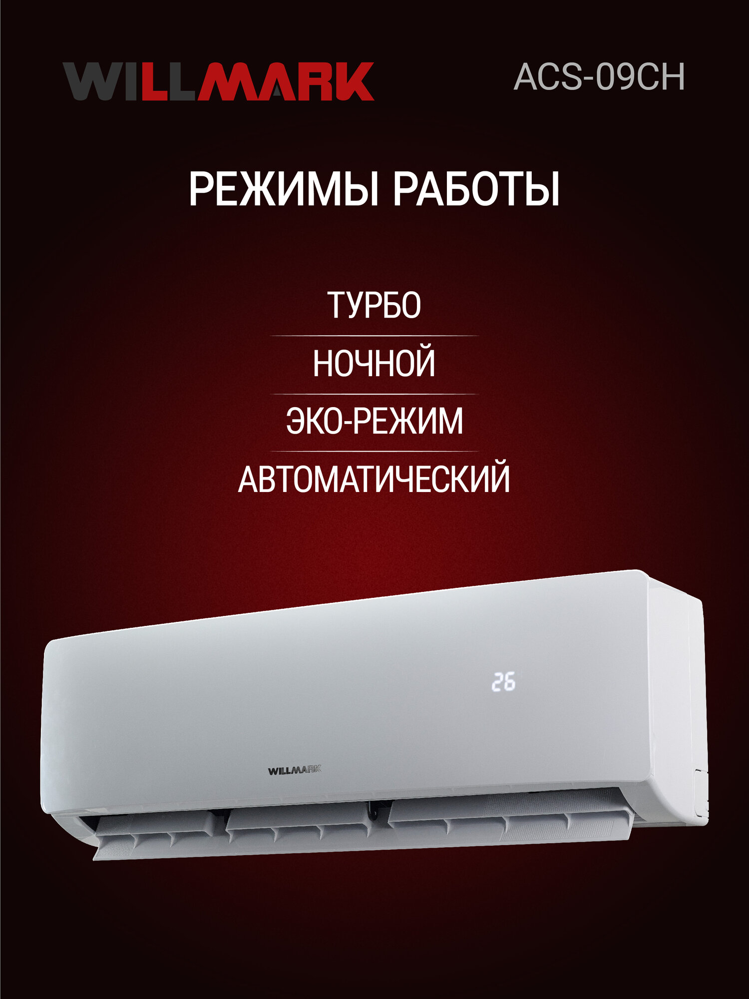 Кондиционер (сплит-система) WILLMARK ACS-09CH (9000BTU, дисплей, реж. обогрев, осушение, MULTI AIRLOW) информация: