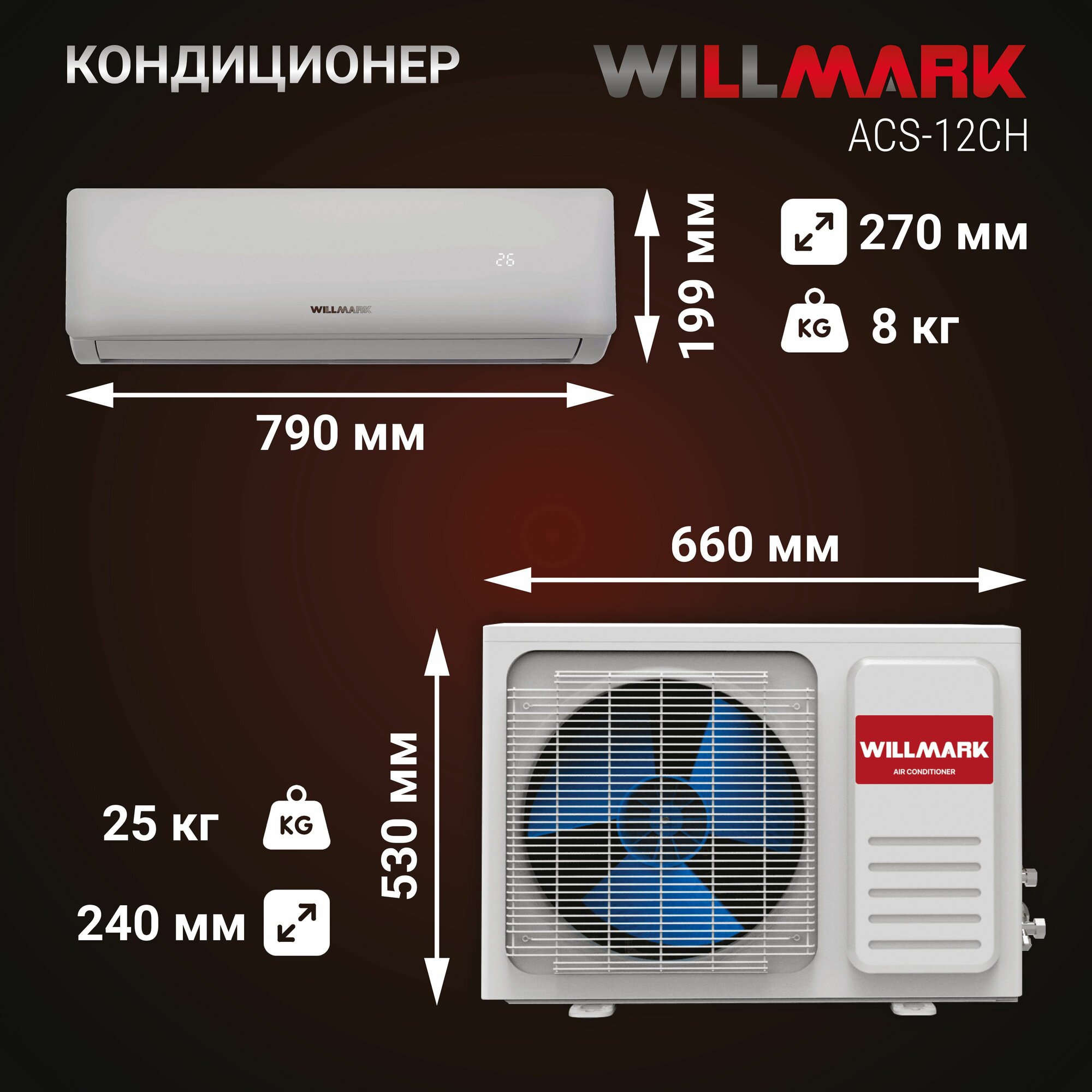 Кондиционер (сплит-система) WILLMARK ACS-12CH (12000BTU, дисплей, реж. обогрев, осуш, MULTI AIRLOW) информация: