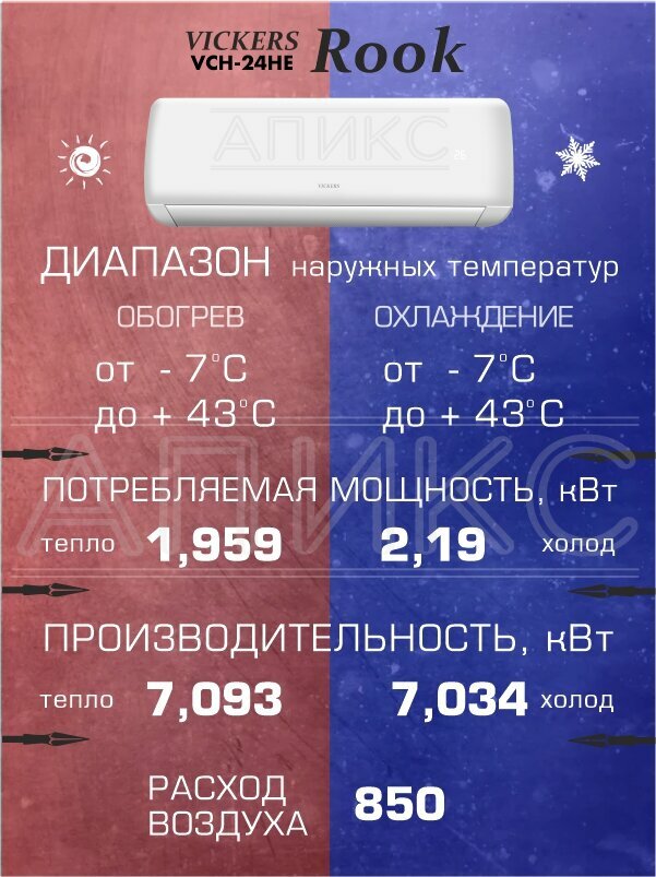 Сплит-система Vickers VCH-24HE Rook on/off кондиционер до 72 м2 информация: