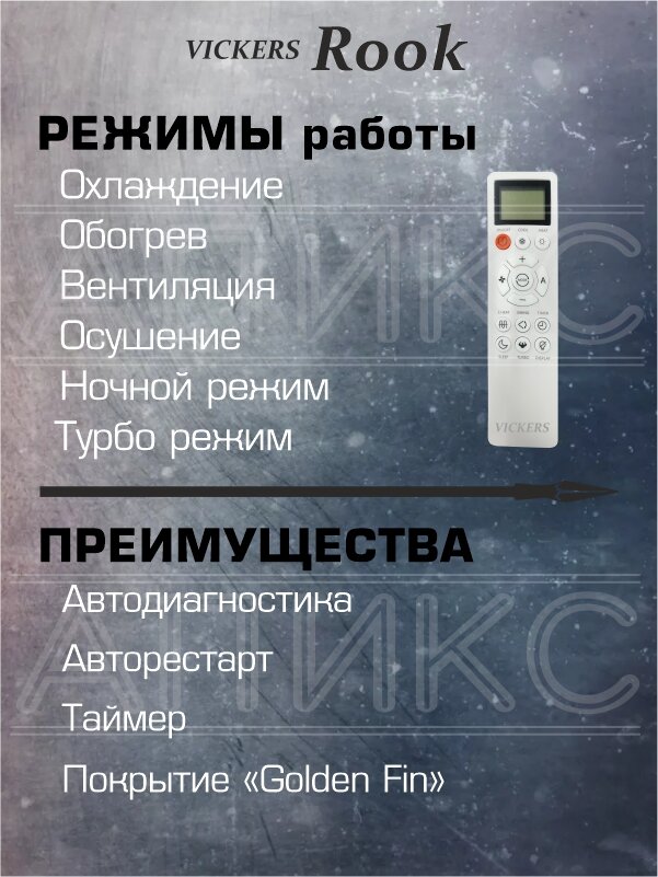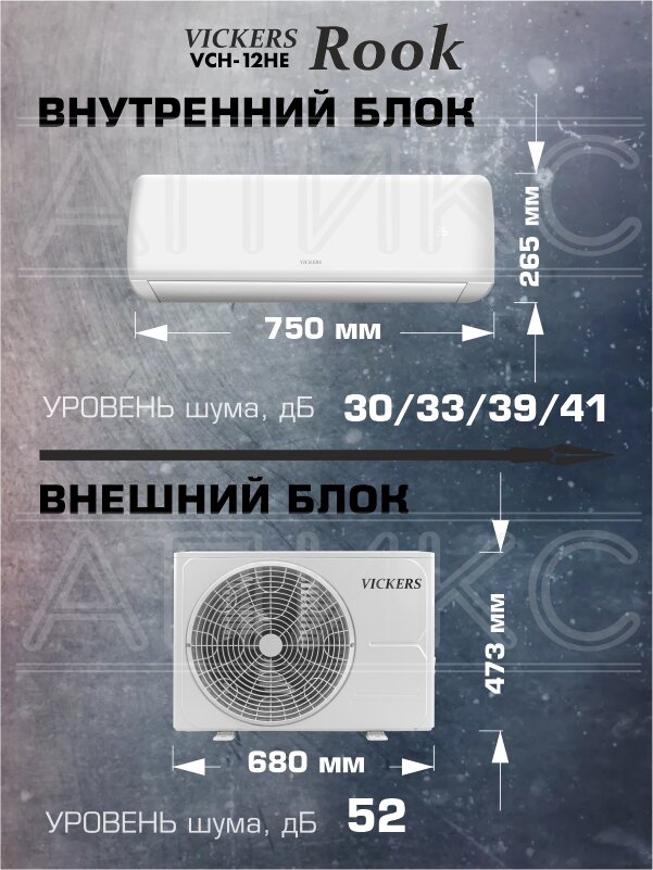 Сплит-система VICKERS VCH-12HE, Rook, настенного типа, 36 кв. м, A класс информация: