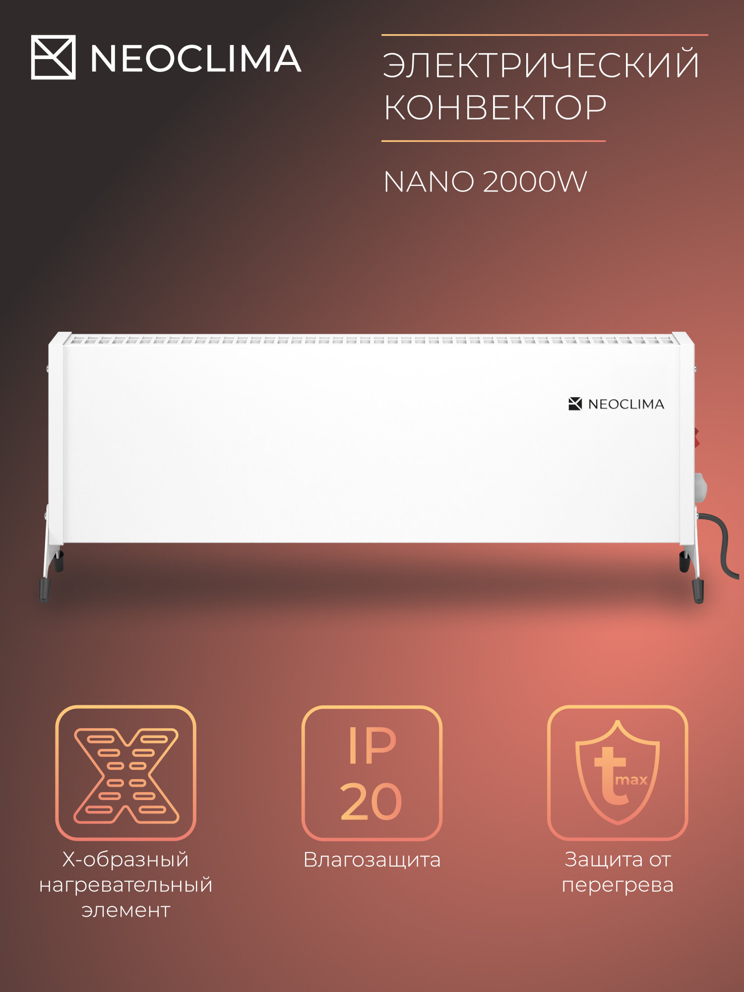 10 цен на Nano 2000W Электроконвектор Nano марки "Neoclima" 2.0 квт (настенное и напольное крепление)