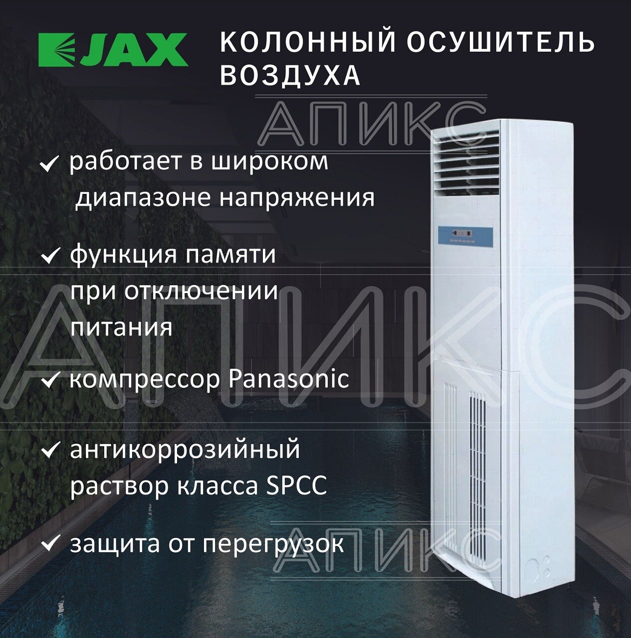Осушитель воздуха Jax JHAVD-90D, автоматический, для 160м², белый информация: