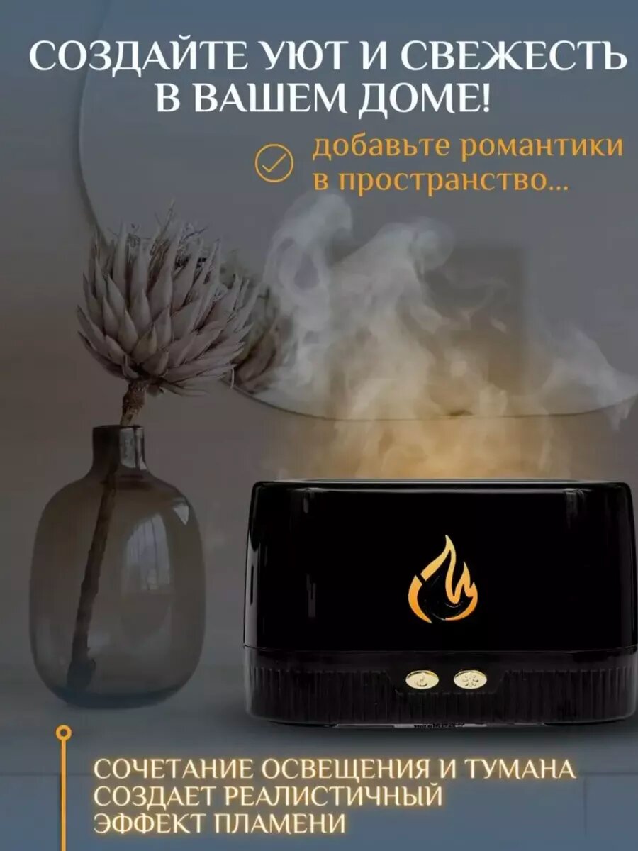 Увлажнитель воздуха и аромадиффузор с подсветкой для дома, ночник с эффектом пламяни