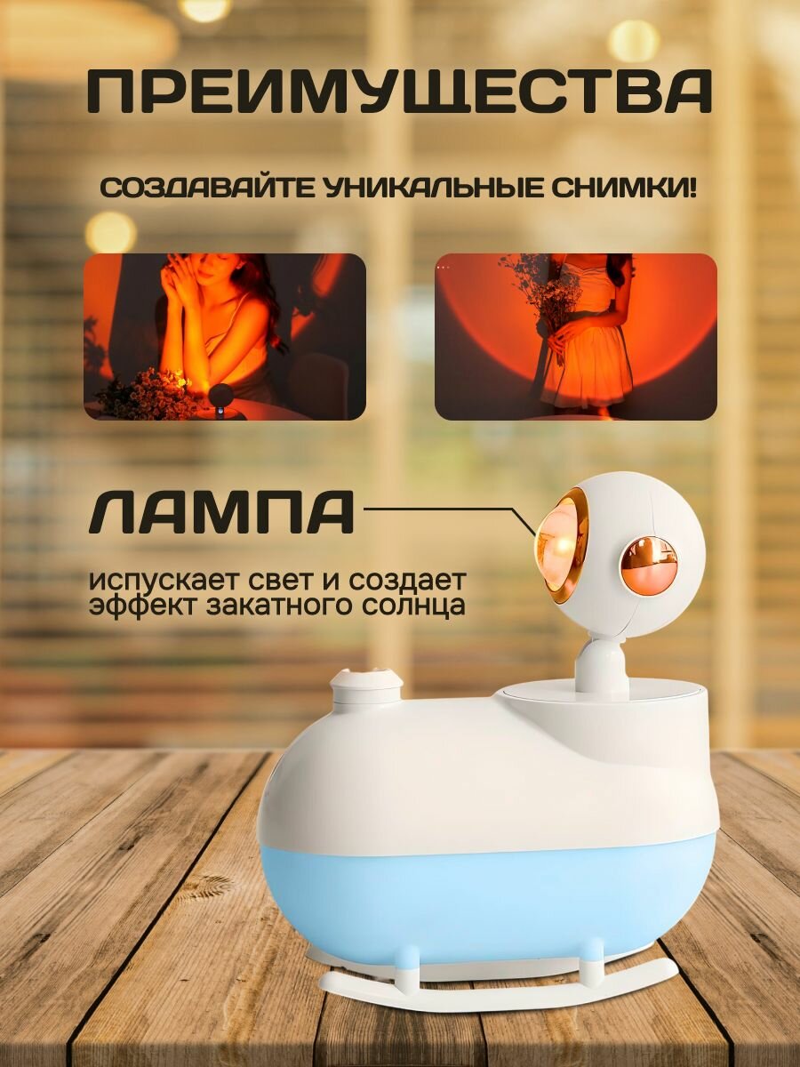 Мини увлажнитель воздуха со световым эффектом заката, белый информация: