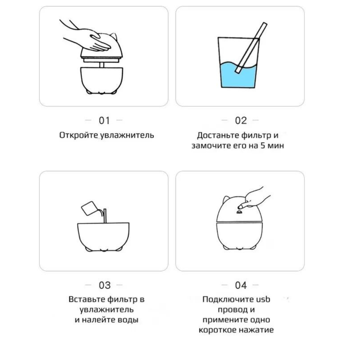 Увлажнитель воздуха, LED светильник ночник, Увлажнитель Cat (кошка) Зеленый (Green) информация:
