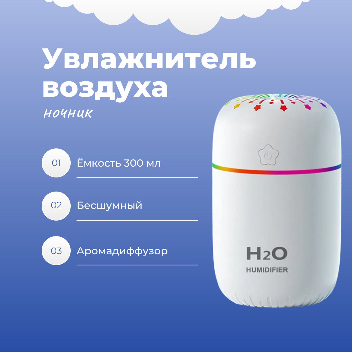 Ультразвуковой увлажнитель воздуха / ночник ABC для дома и автомобиля (белый) информация:
