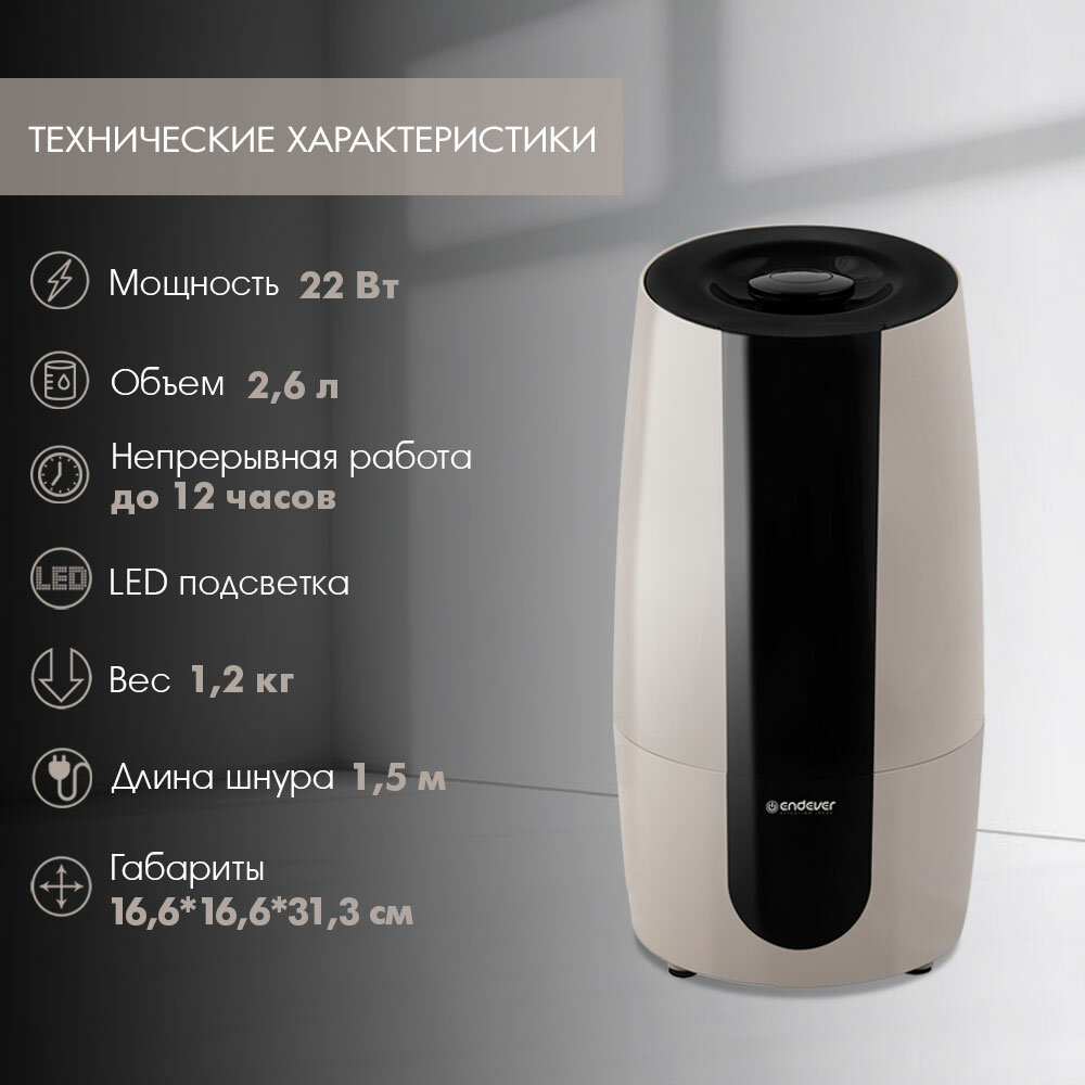 10 цен на Увлажнитель воздуха ультразвуковой для дома ENDEVER OASIS-250, 22 Вт, керамический фильтр