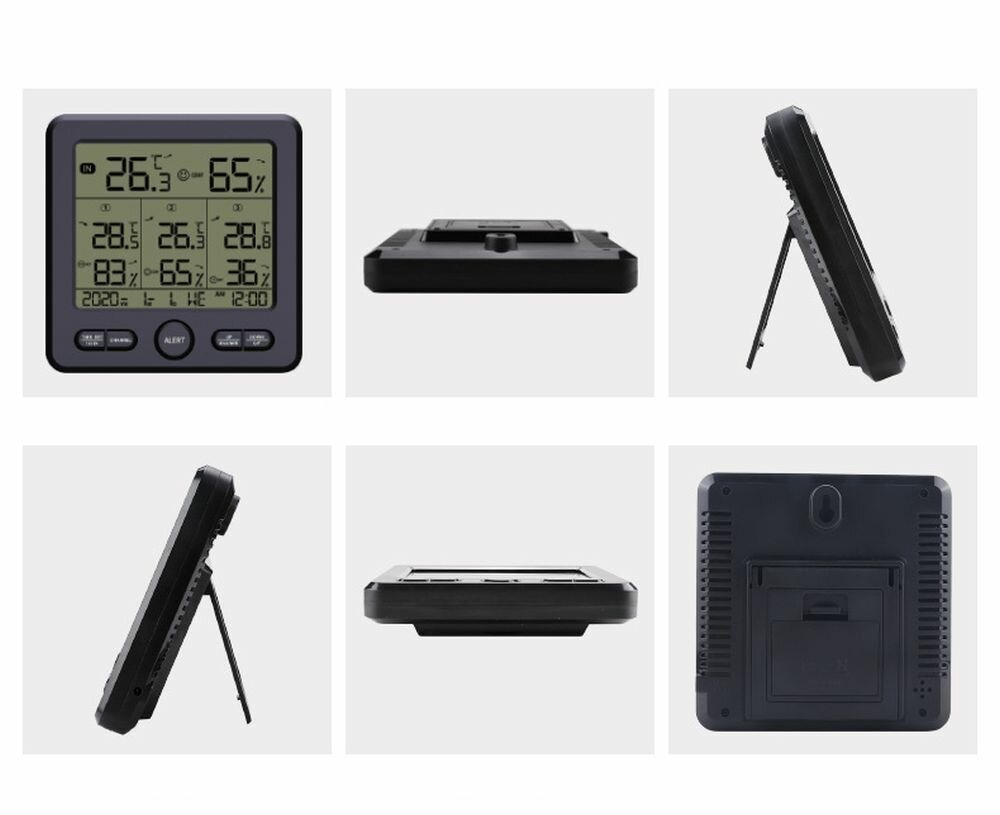 10 цен на Цифровая метеостанция TS-6210-B с термометром/гигрометром с 3-мя беспроводными датчиками, большой экран (черный)