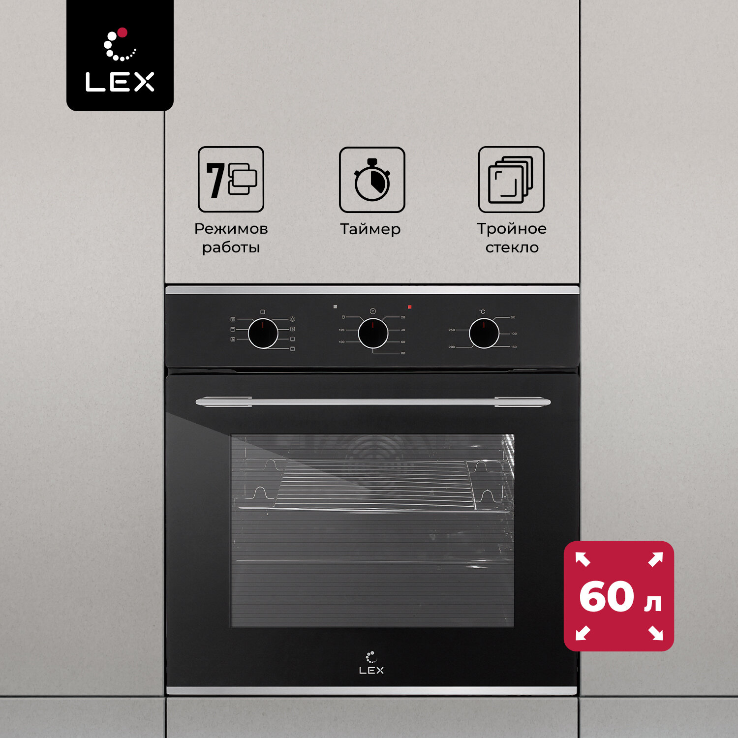 Отзывы на Духовой шкаф электрический встраиваемый LEX EDM 075 BL , таймер, механическое управление, объем 60 л, тройное стекло у двери, гарантия 36,6 мес.
