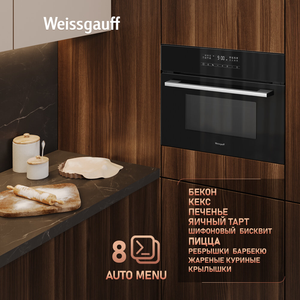 10 цен на Встраиваемый компактный духовой шкаф с СВЧ Weissgauff OE 446 BK