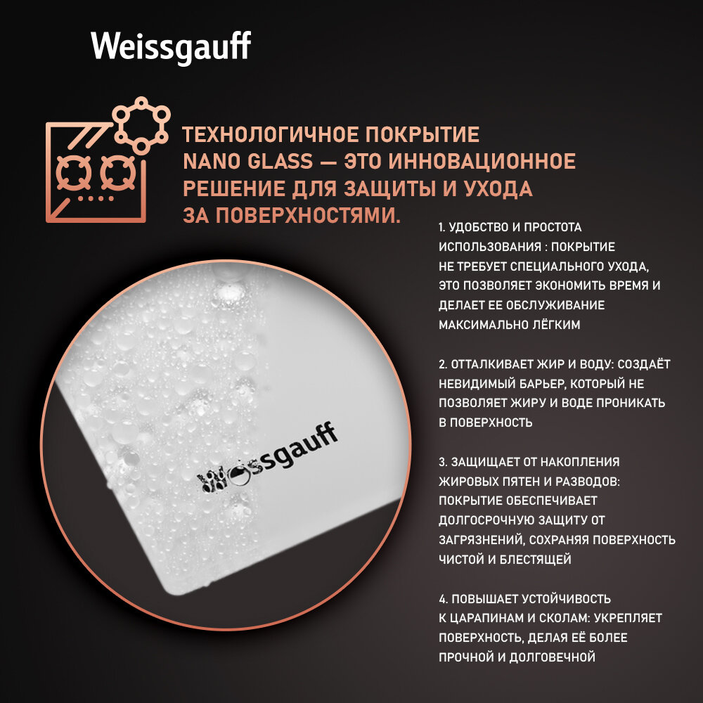 Варочная панель Weissgauff HGG 641 BV Nano Matt Glass wok-конфорка 60 см ширина, Стекло легкой очистки NanoGlass 20 590 ₽
