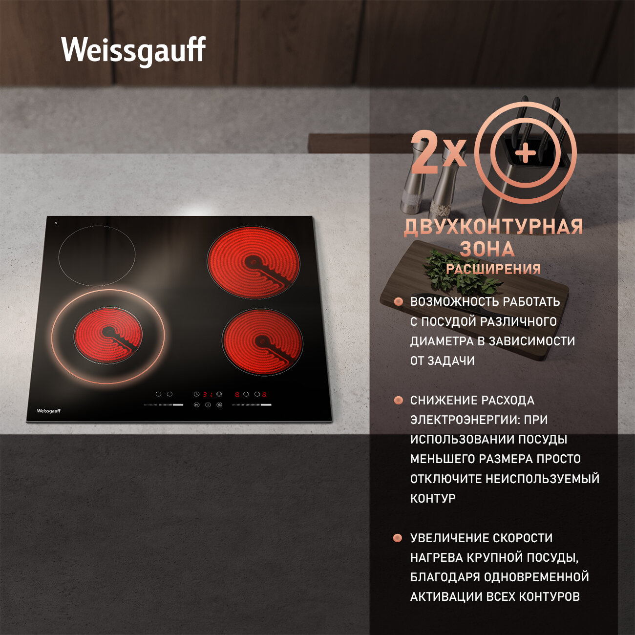 Варочная панель со слайдером Weissgauff HV 641 BSG, двухконтурная зона расширения информация: