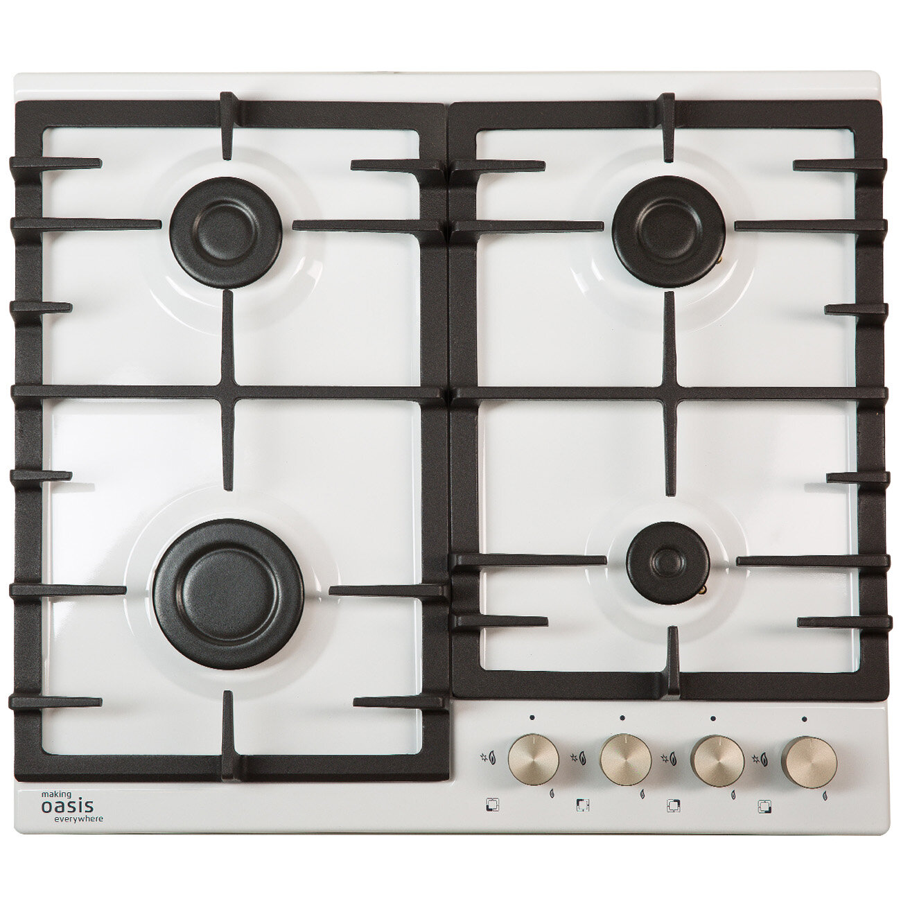 Варочная панель встраиваемая Oasis P-MWRP, газовая, 4 конфорки, эмаль, чугунные решётки, белая информация: