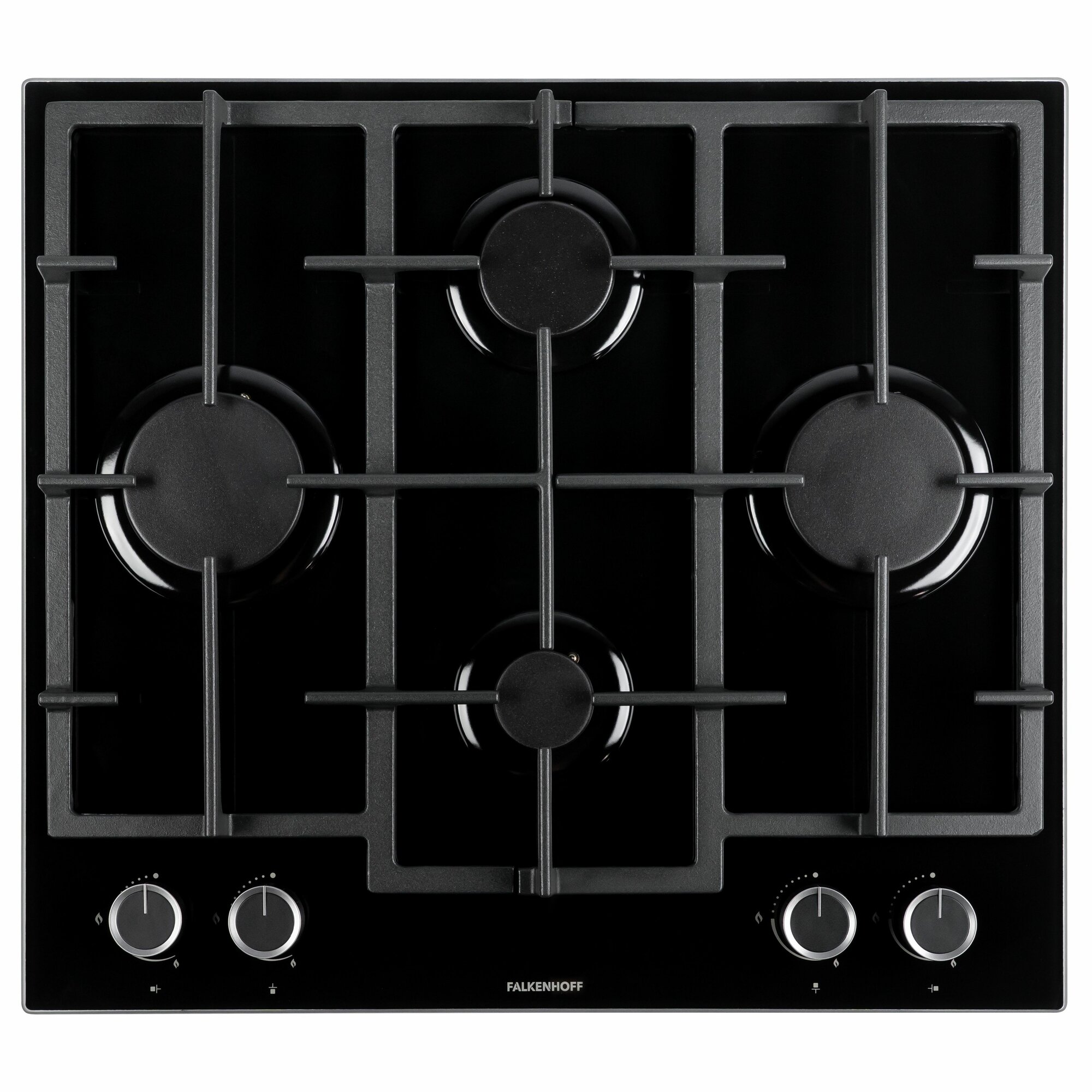 10 цен на Газовая варочная панель 60см, стекло , газ-контроль , чугунная решетка, FALKENHOFF HB
