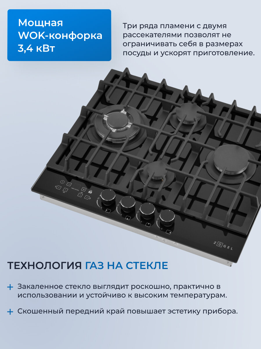 Варочная панель газовая ZUGEL ZGH600X, с таймером, чёрная информация: