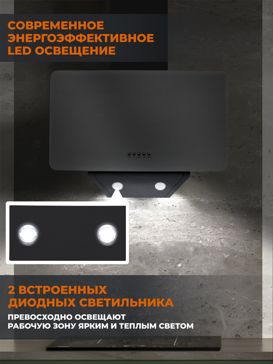 Вытяжка кухонная наклонная Libhof LV-4060 black-silver / тройной алюминиевый жировой фильтр / сенсорное управление