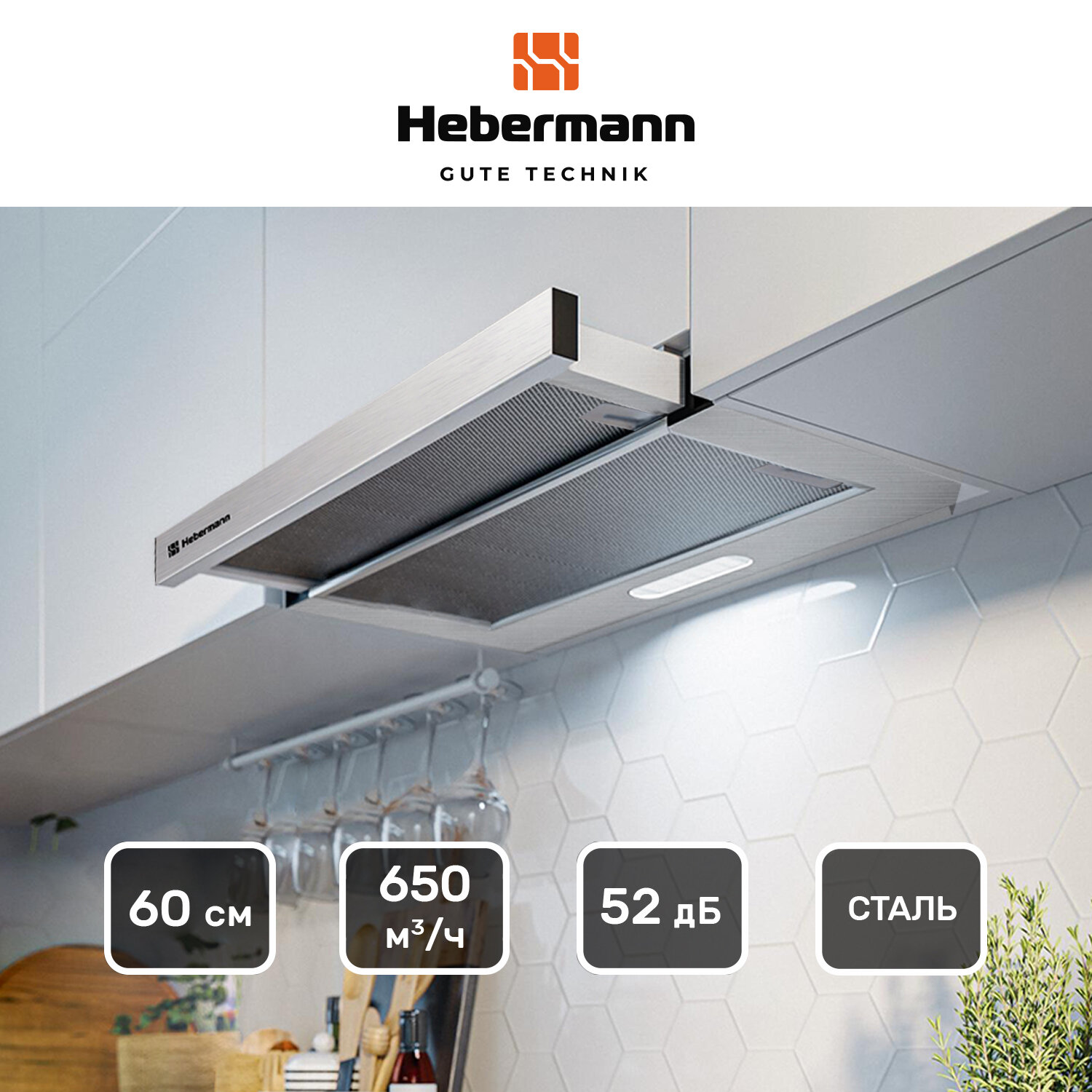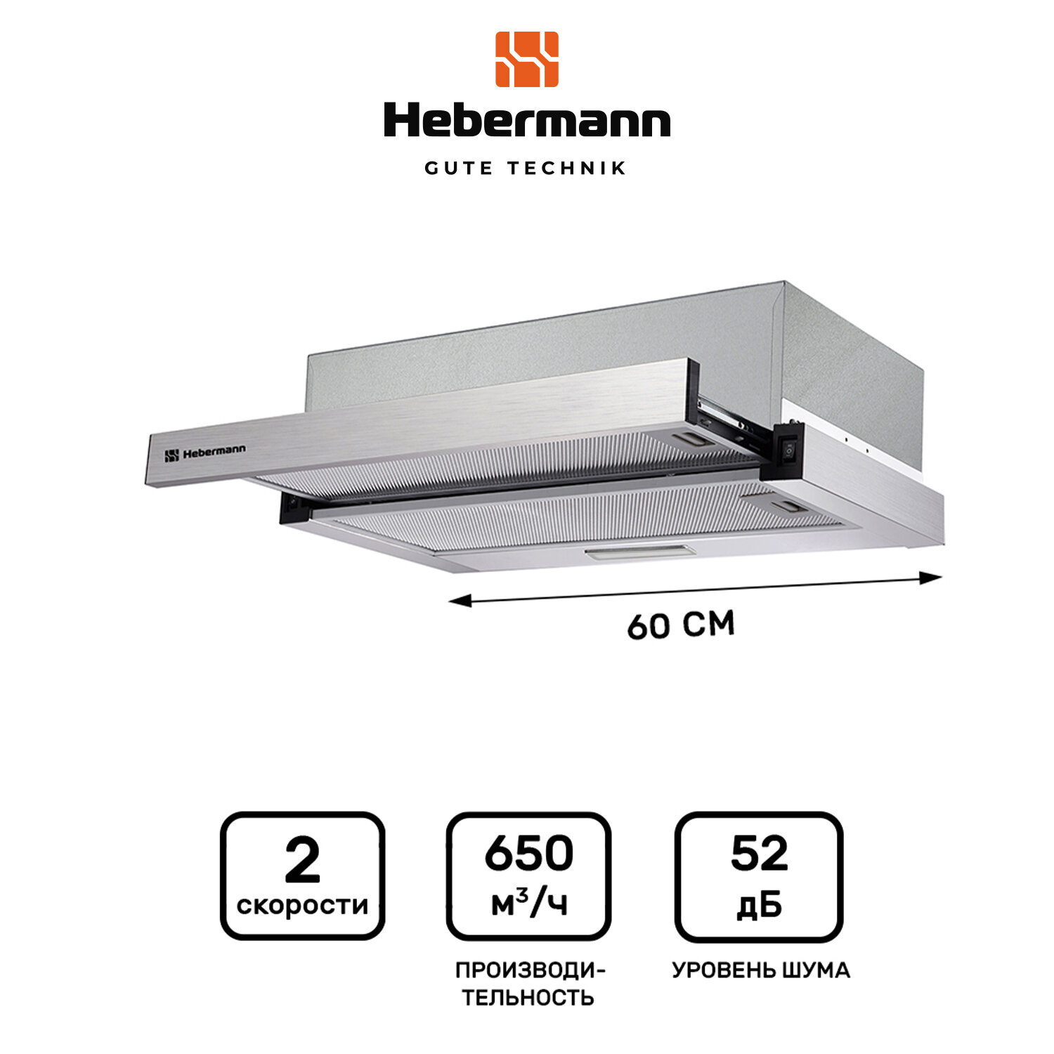 Отзывы на Кухонная вытяжка встраиваемая HBFH 60.1 X, 60см, Клавишное управление, 2 скорости, Отделка: Нержавеющая сталь, LED лампа