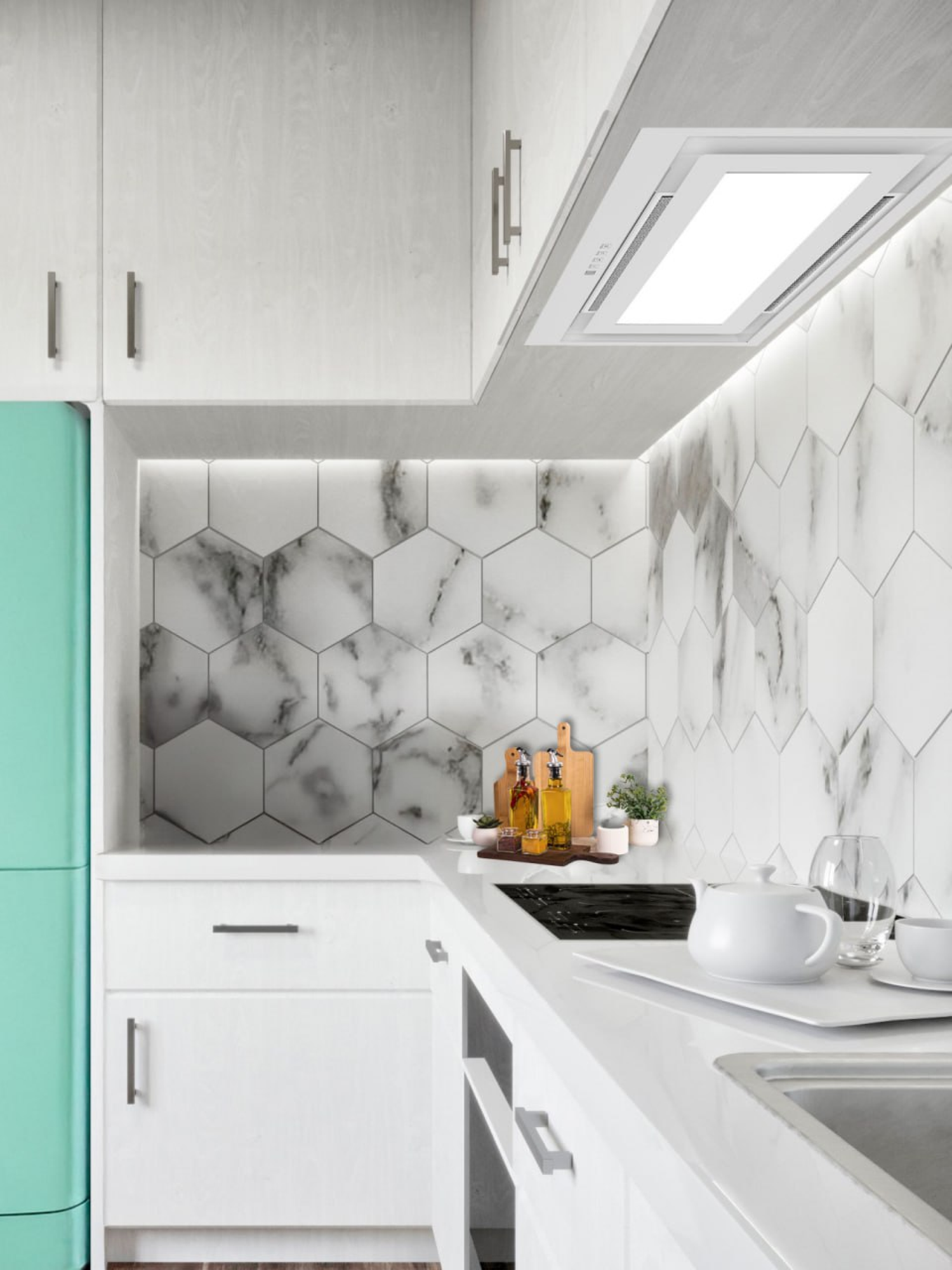 Наклонная кухонная вытяжка LEX MERA 600 WHITE, 60см, отделка: стекло, кнопочное управление, LED лампы, белый.