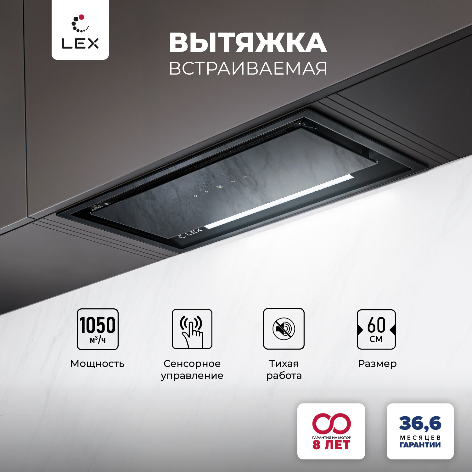 Вытяжка кухонная встраиваемая LEX HYPER 600 GS BL, отделка стекло, пульт д/у, сенсорное управление, таймер, 3 скорости. информация: