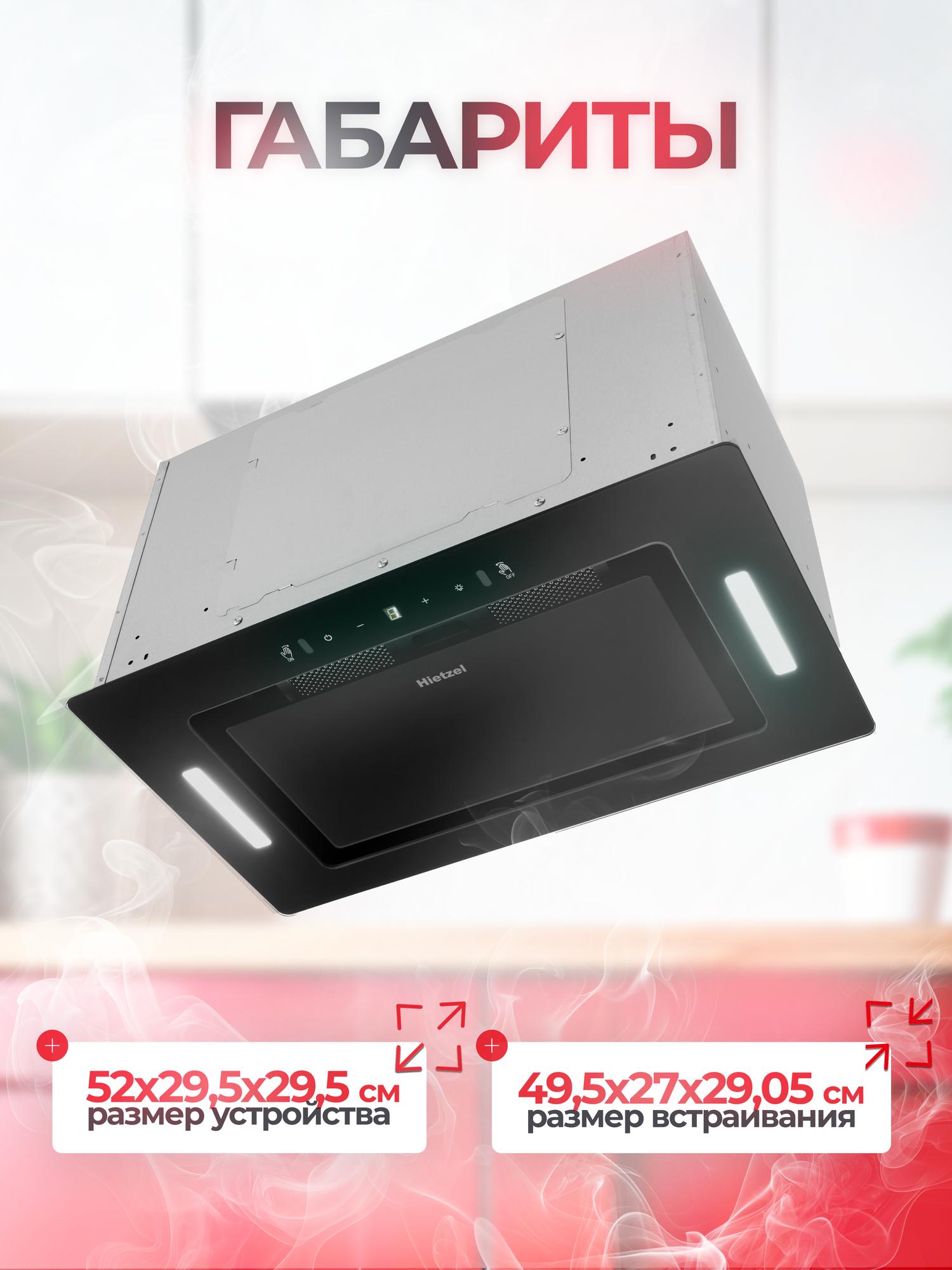 Отзывы на Вытяжка встраиваемая черная для кухни Hietzel CHB 5206J BL сенсорная, управление жестами