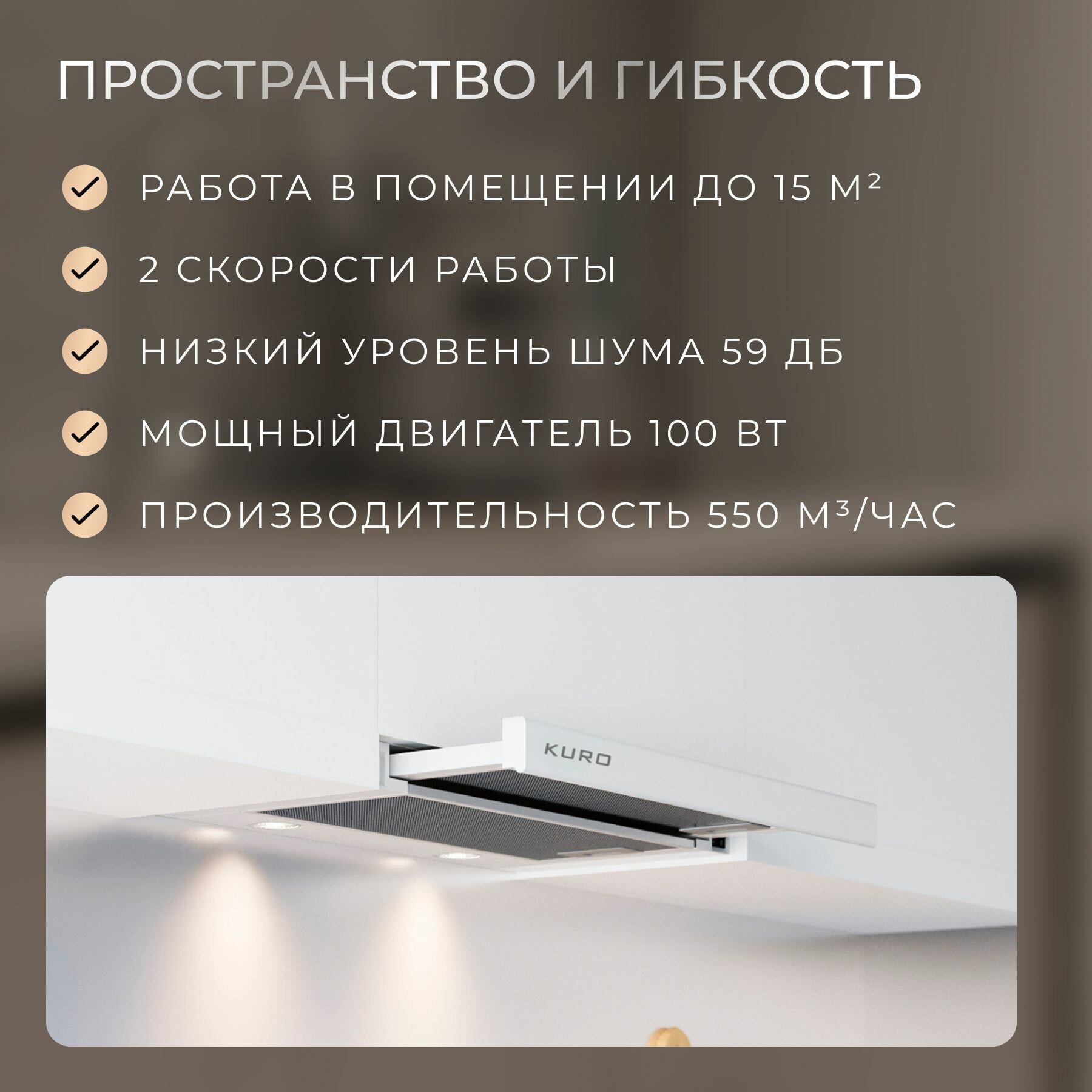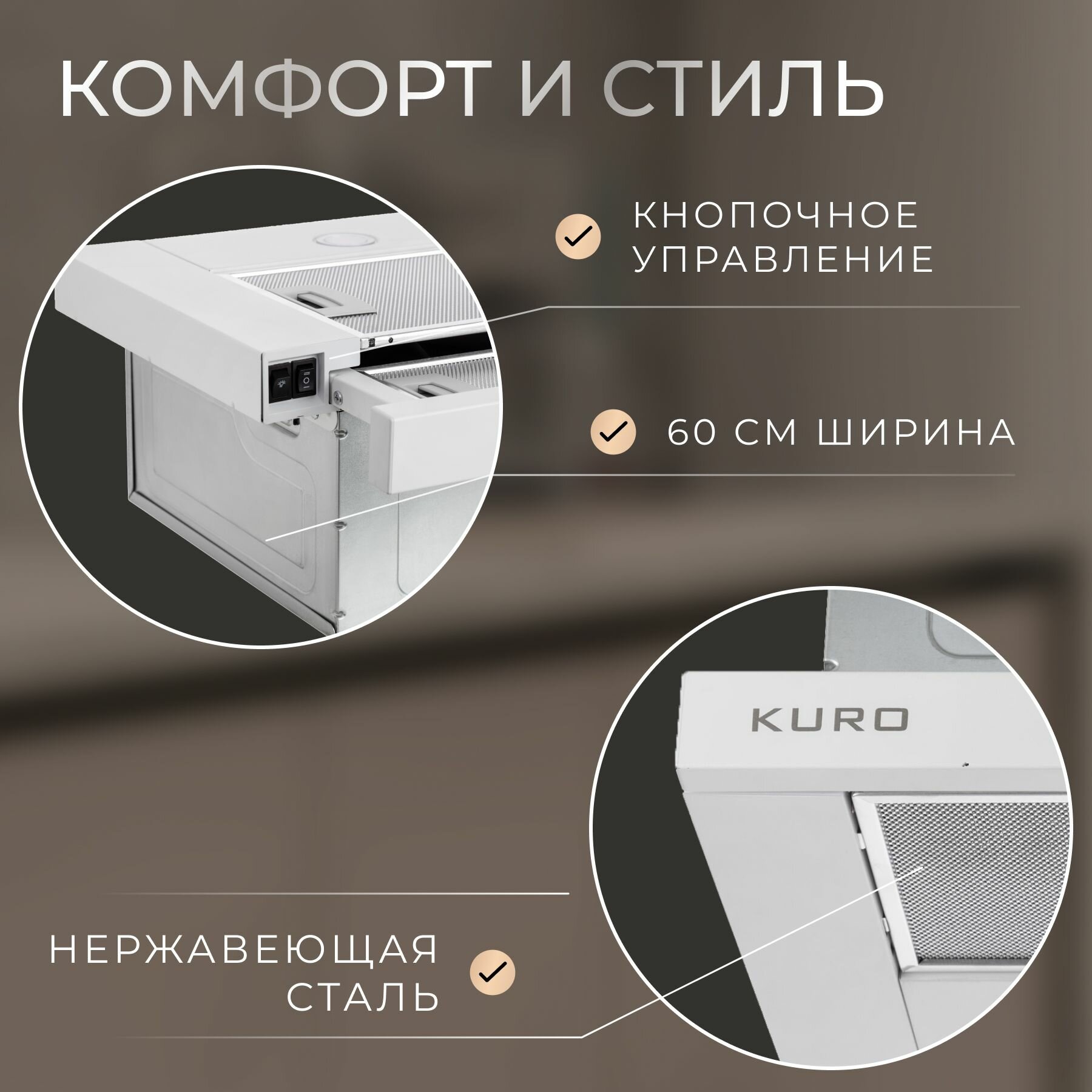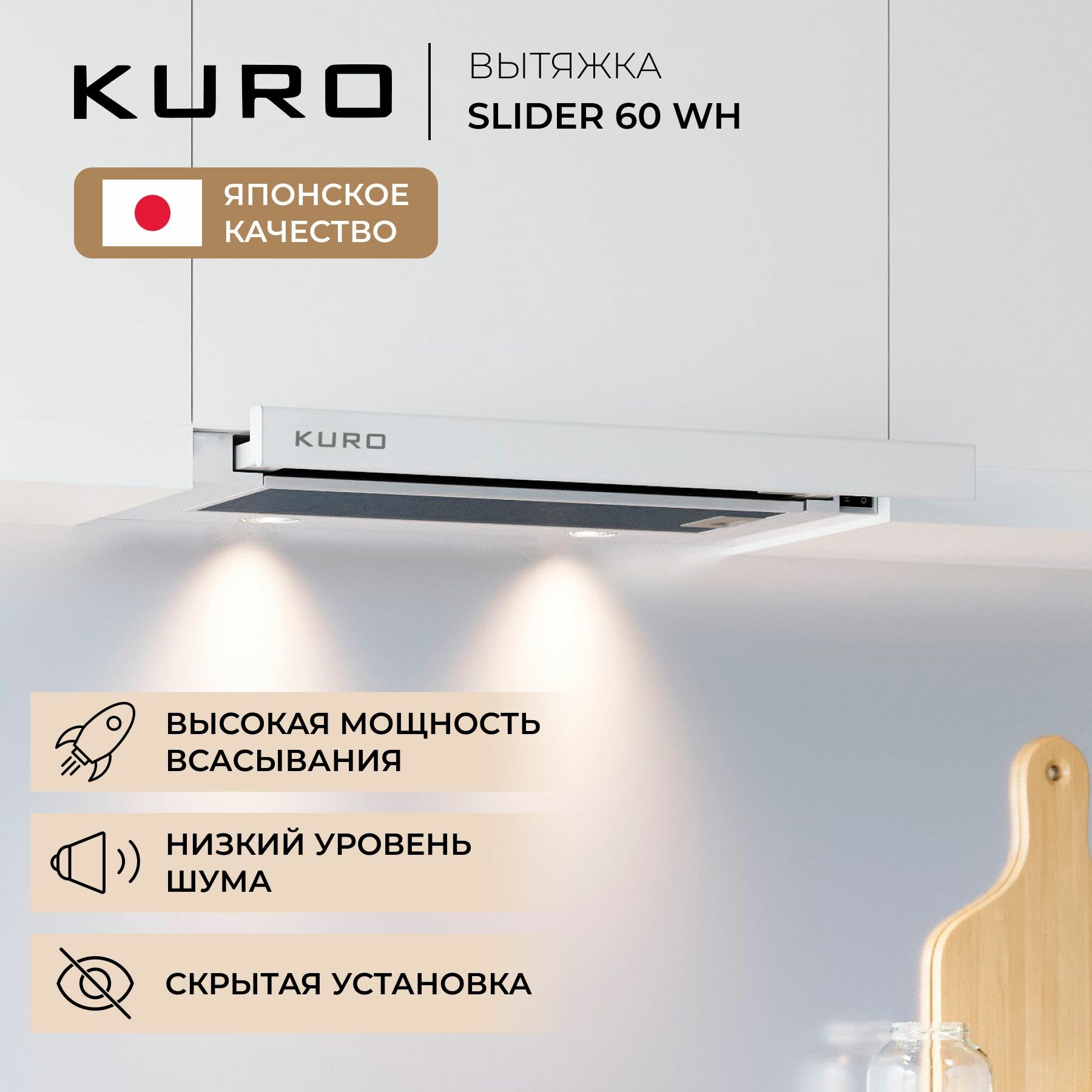 Вытяжка кухонная встраиваемая KURO SLIDER 60 WH информация: