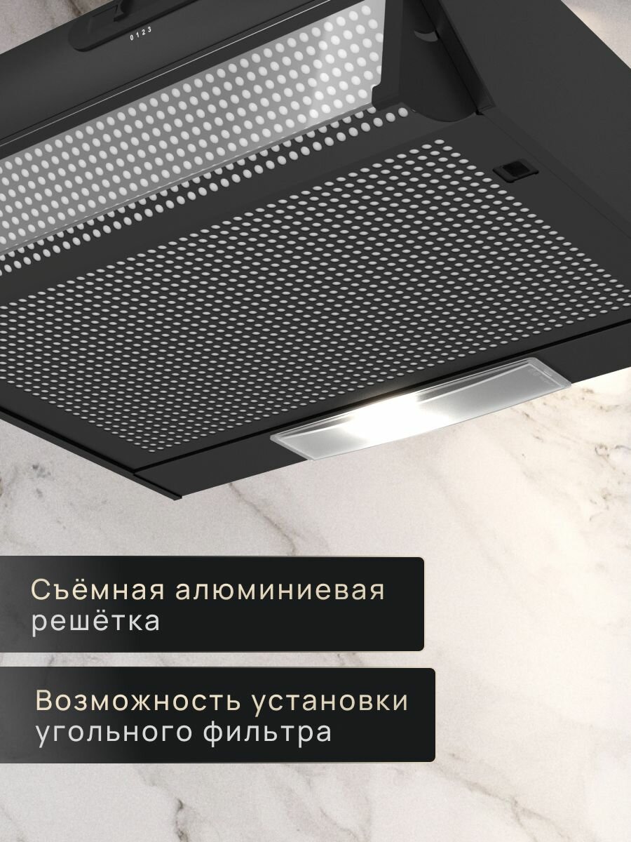 10 цен на Вытяжка кухонная 60 см встраиваемая, 290 м3/ч, цвет черный, ELIKOR Davoline 60П-290-П3Л, 3 скорости, управление ползунковое, лампа накаливания