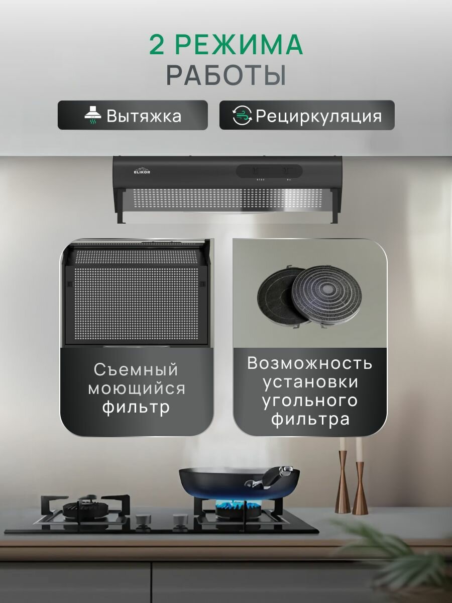 Отзывы на Вытяжка кухонная 60 см встраиваемая, 290 м3/ч, цвет черный, ELIKOR Davoline 60П-290-П3Л, 3 скорости, управление ползунковое, лампа накаливания