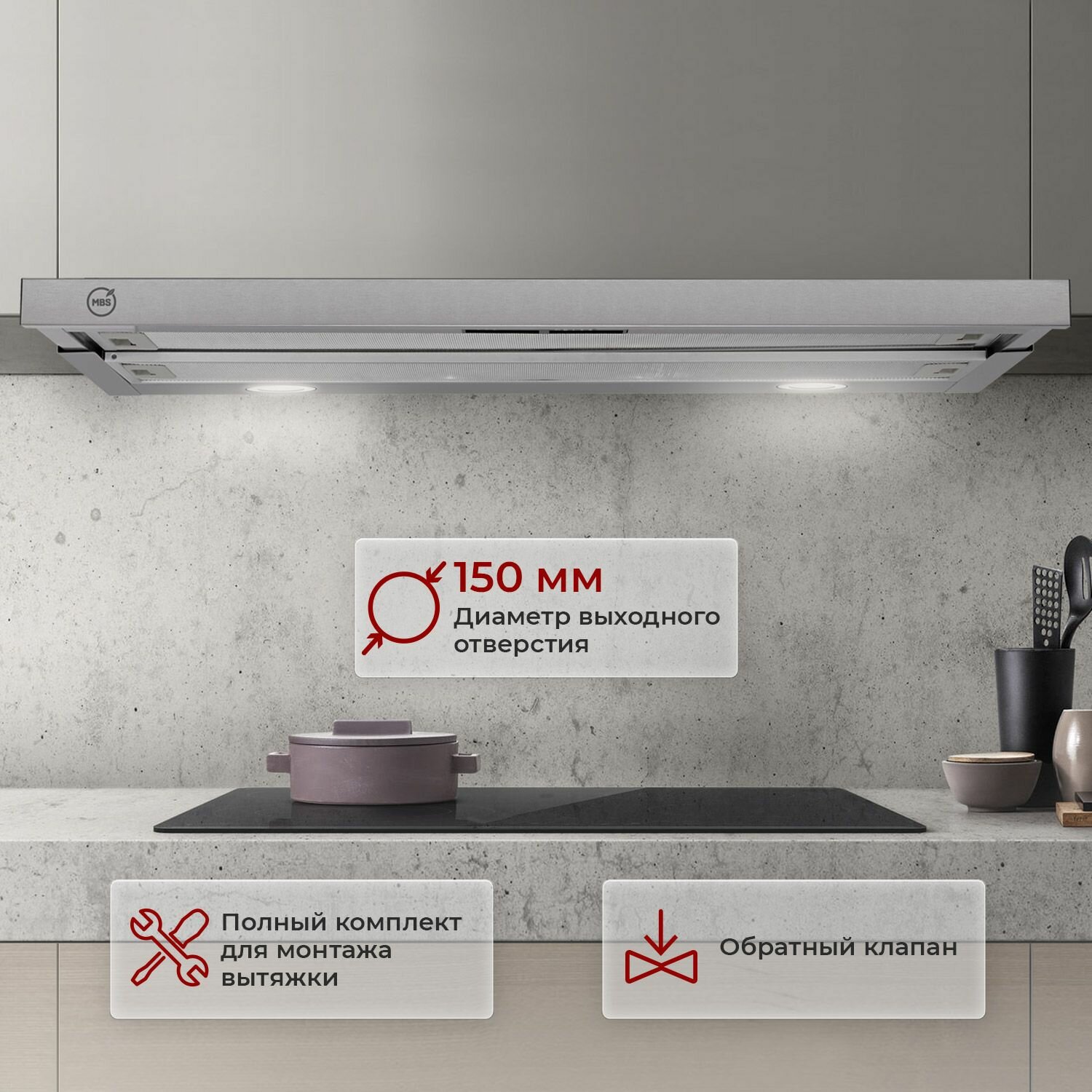 Отзывы на Кухонная вытяжка встраиваемая MBS ARALIA 190 INOX/90 см/производительность 900м3/ч, низкий уровень шума.