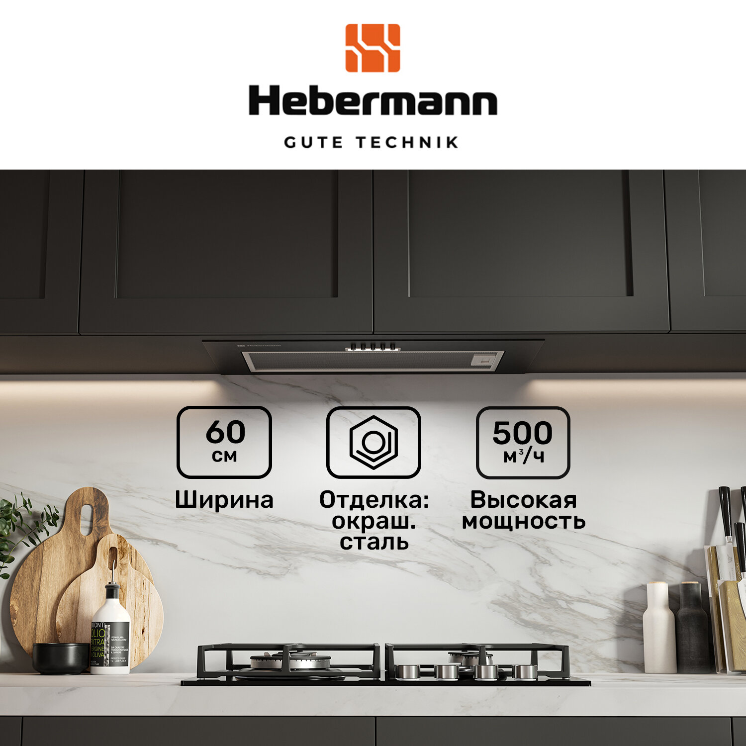 Отзывы на Кухонная вытяжка встраиваемая HBFH 60.10 B 60 см, кнопочное управление, 3 скорости, отделка: Окрашенная сталь, LED лампы