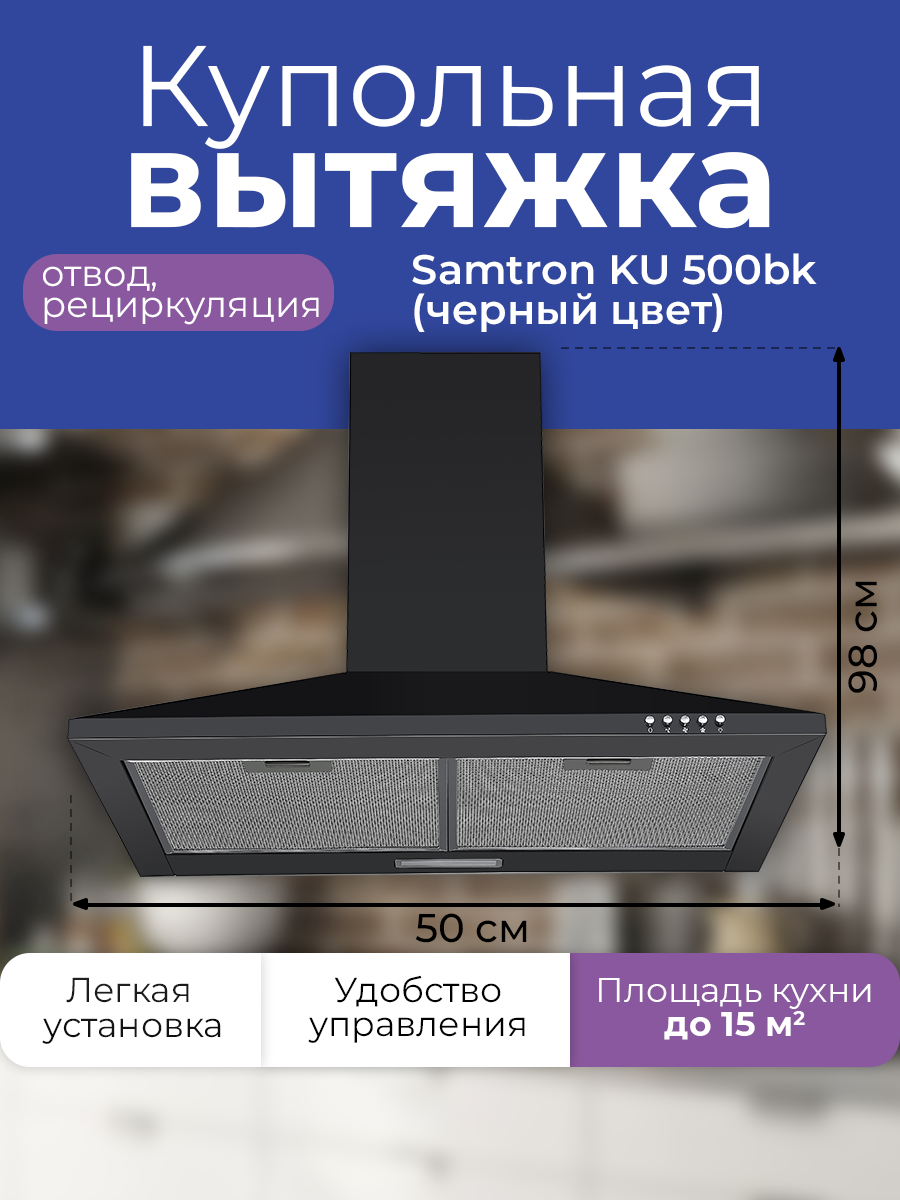 Вытяжка каминная Samtron KU 500 bk цвет черный информация: