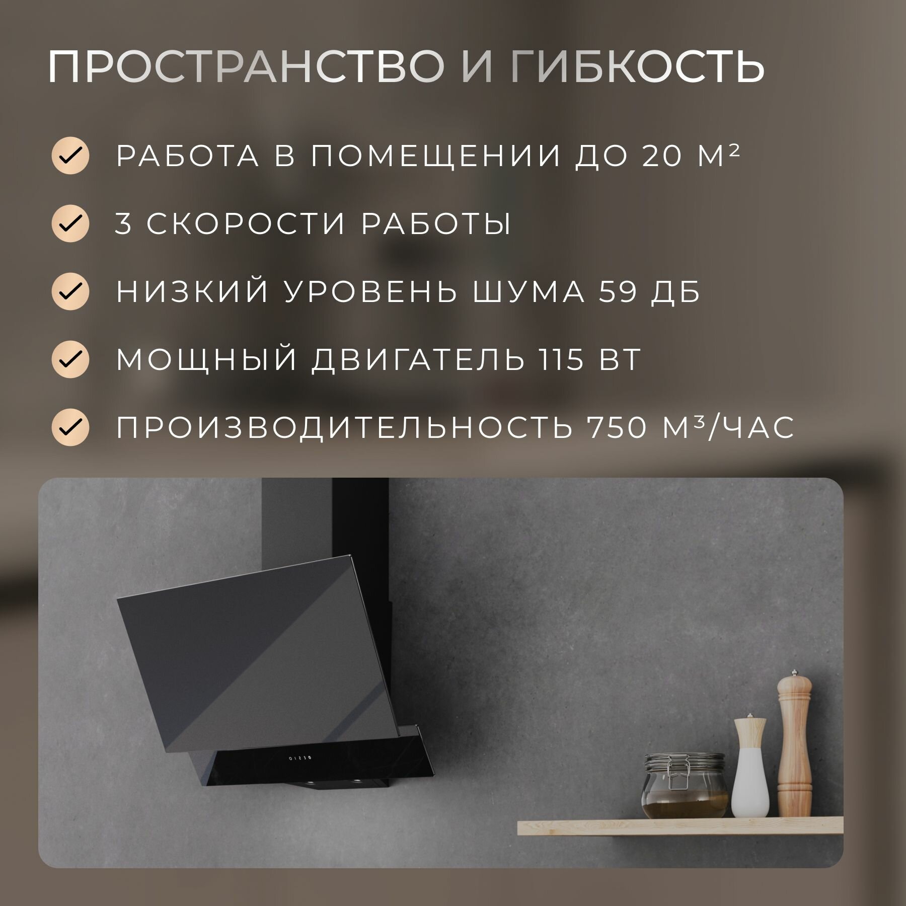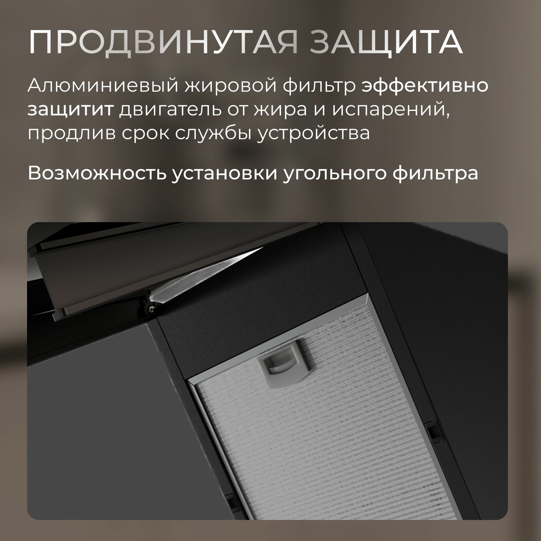 Вытяжка кухонная наклонная Libhof LV-4060 black-silver / тройной алюминиевый жировой фильтр / сенсорное управление