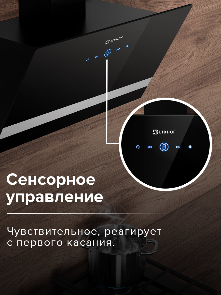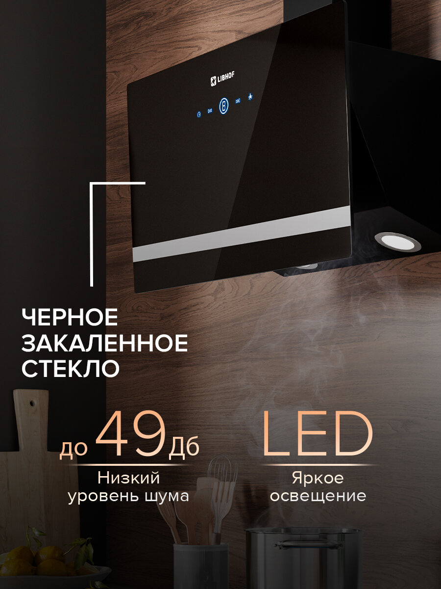10 цен на Вытяжка кухонная наклонная Libhof LV-4060 black-silver / тройной алюминиевый жировой фильтр / сенсорное управление