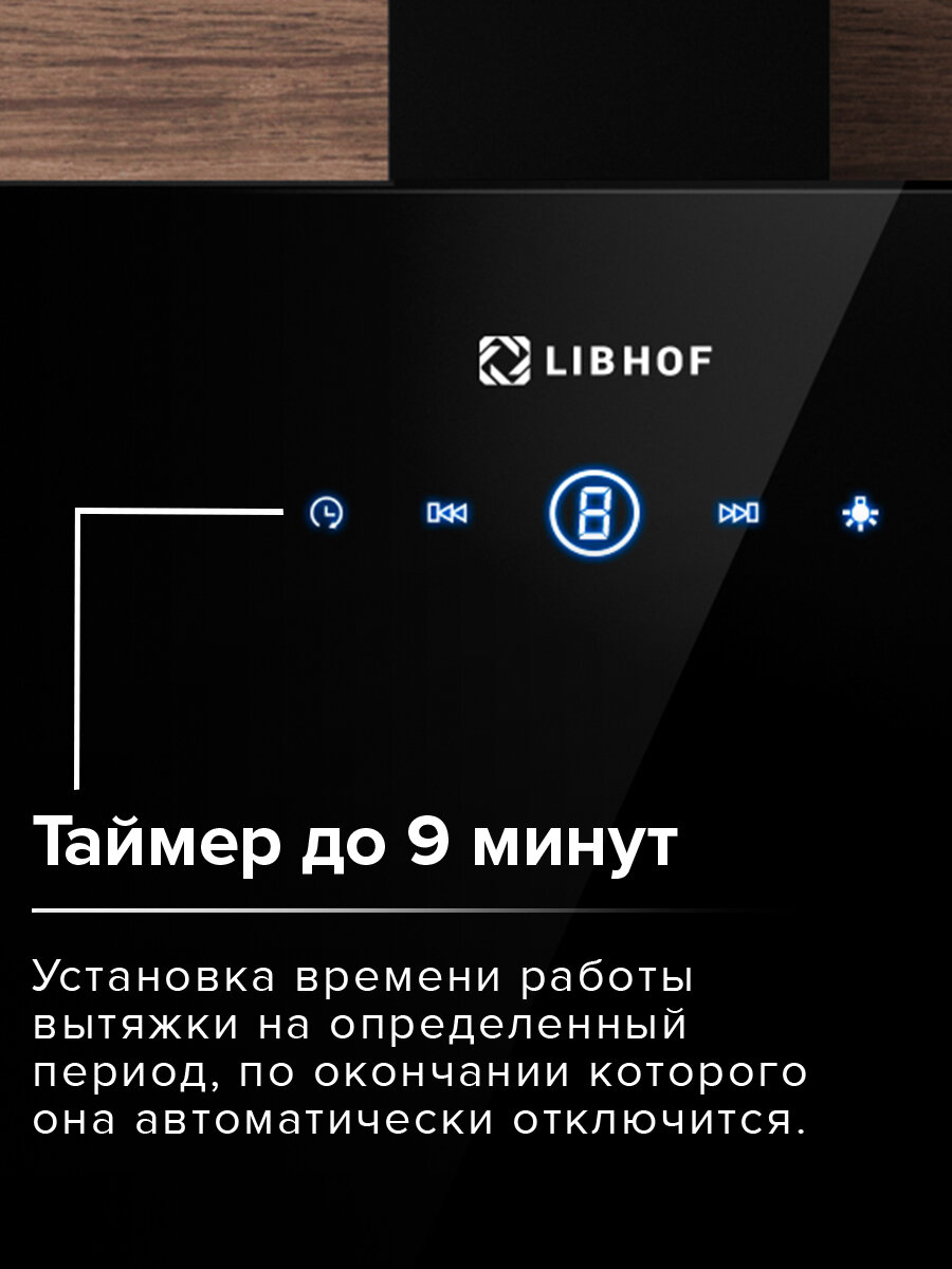 Вытяжка кухонная наклонная Libhof LV-4060 black-silver / тройной алюминиевый жировой фильтр / сенсорное управление информация: