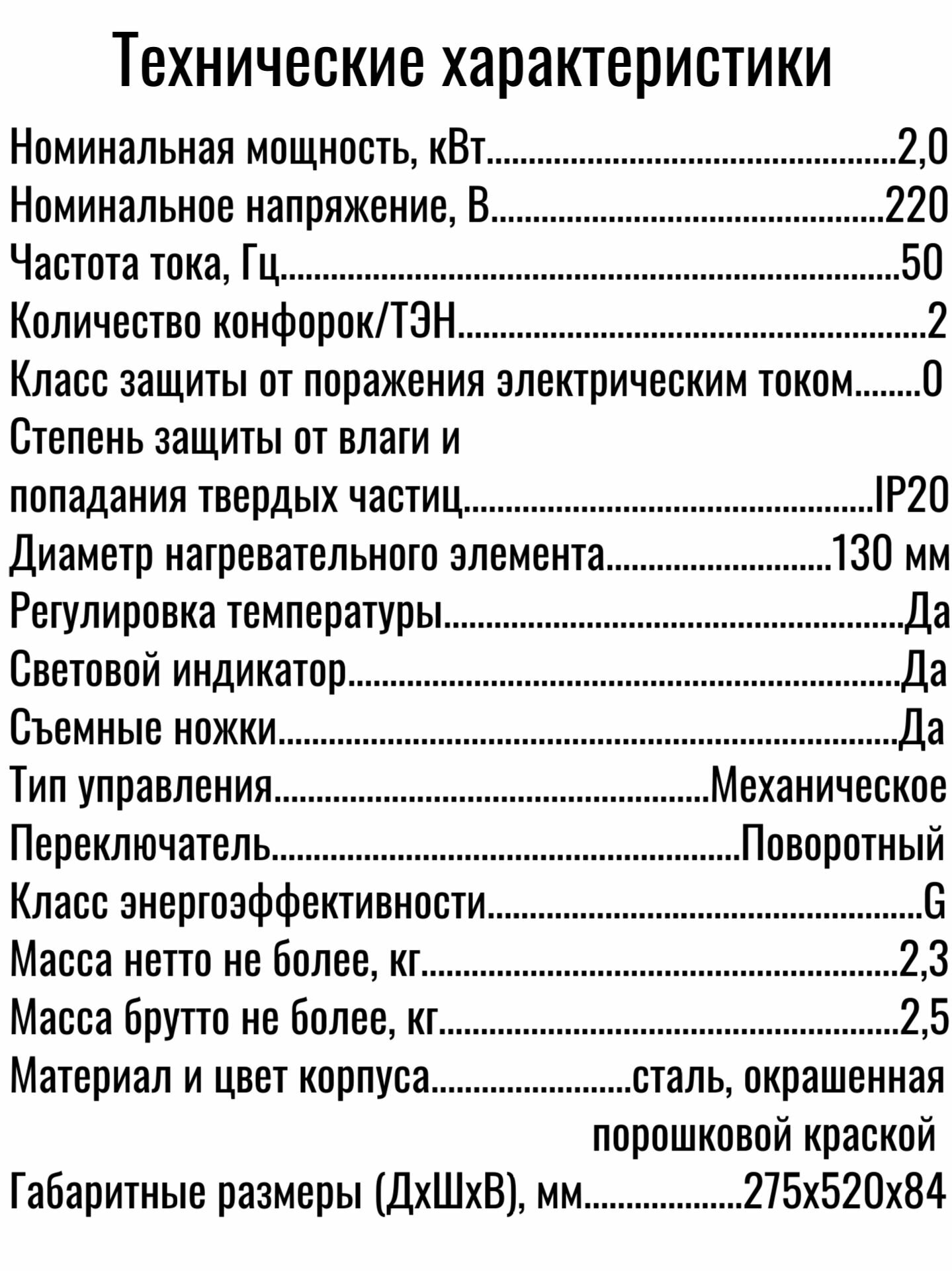 Плитка электрическая настольная ZENCHA, 2 конфорки, 2000 Вт, белый информация:
