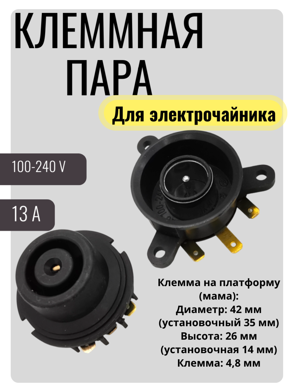 Клеммная пара к электрочайникам универсальная, T125 100-240V 13А TM-XE-B-1 TM-XA-2 информация: