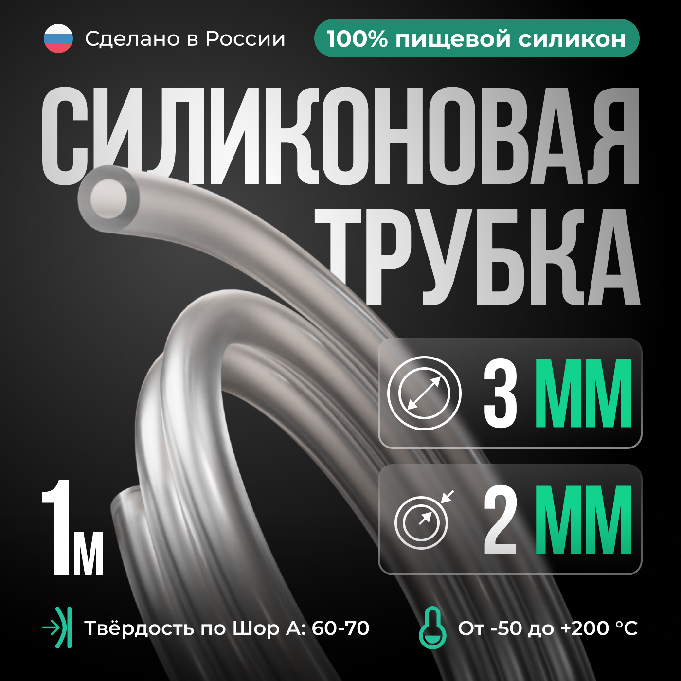 Силиконовая трубка внутренний D3 мм, толщина стенки 2 мм, 1 метр информация: