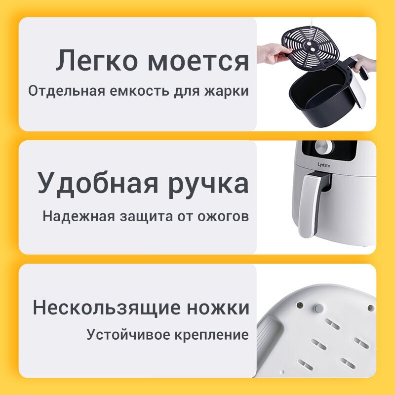 10 цен на Аэрогриль Lydsto "Smart Air Fryer", электронное управление, антипригарное покрытие