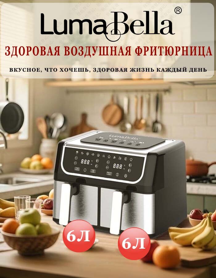 Отзывы на Аэрогриль электрический,2 чаши Аэрофритюрница для дома,Аэрогриль электрический 2 тэнами 6л+6л 3400W