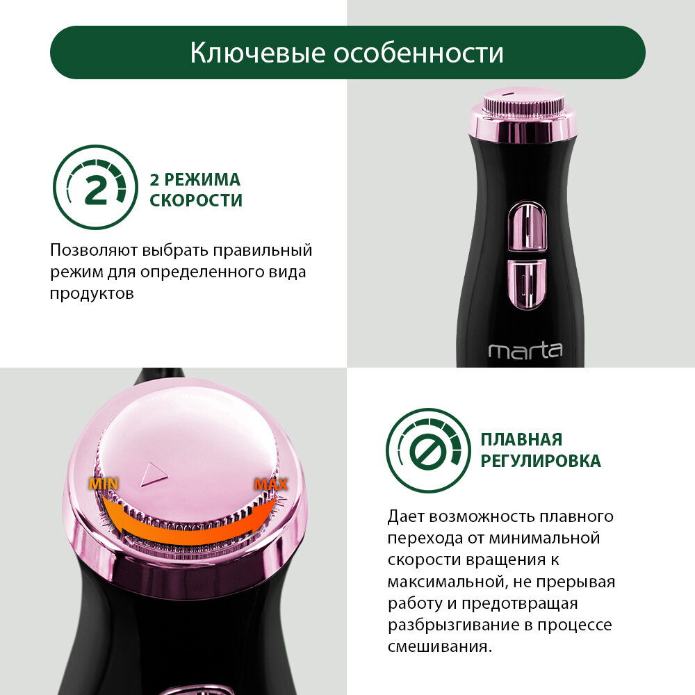 10 цен на Блендер погружной кухонный комбайн MARTA MT-1564 ночной кварц