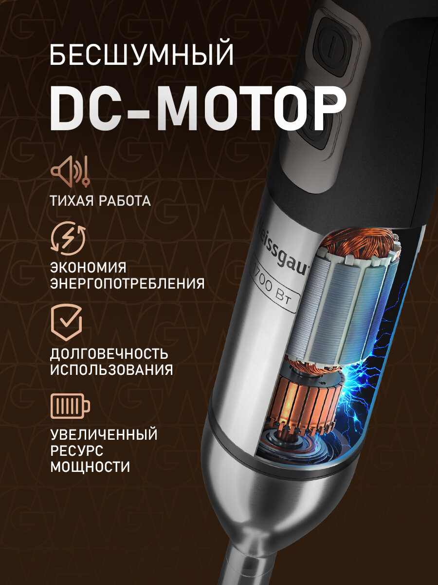 10 цен на Блендер погружной Weissgauff WHB 270 SBB Turbo Mix, скорость вращения 15000 оборотов в минуту