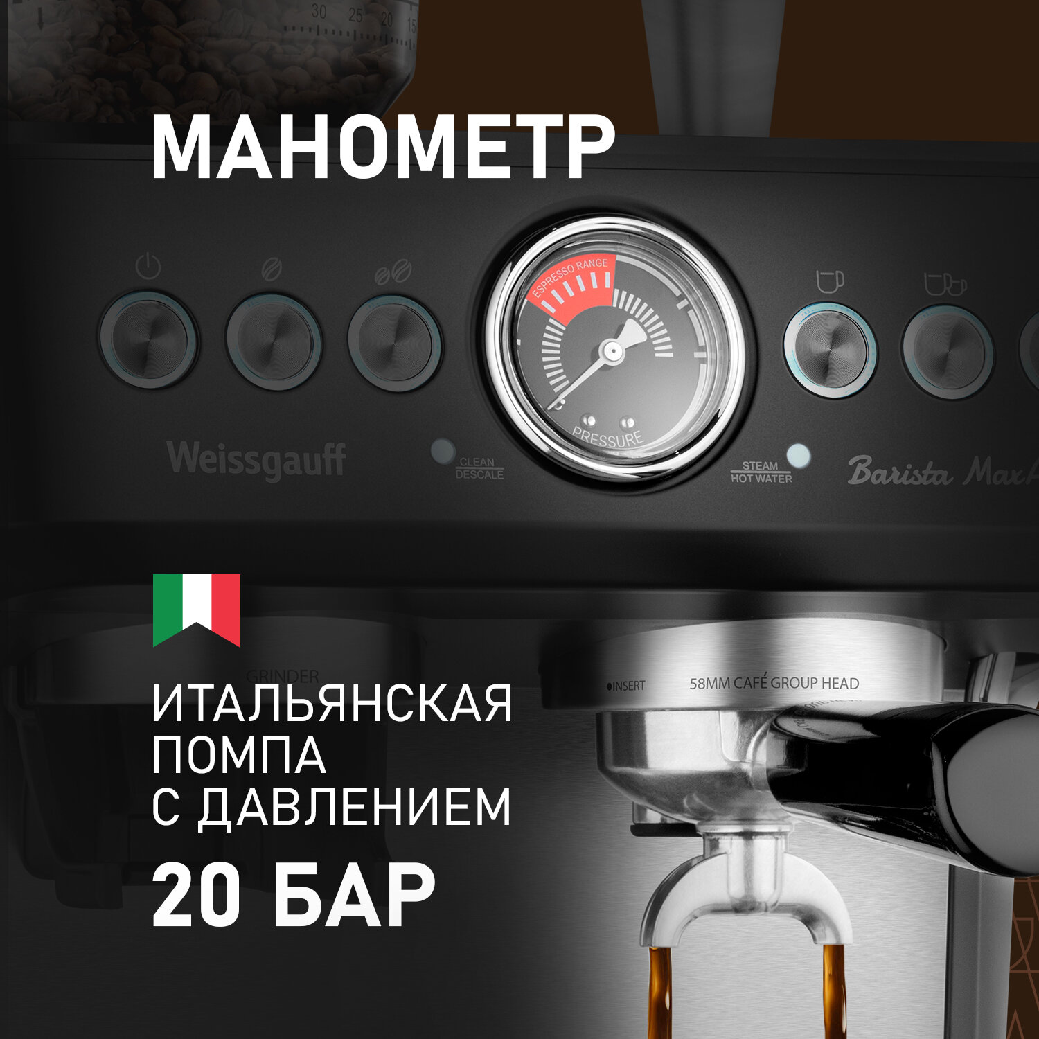 Отзывы на Кофейная станция Weissgauff WCM 685 Barista MaxAroma Pro Inox, Давление 20 бар, Капучинатор, Манометр